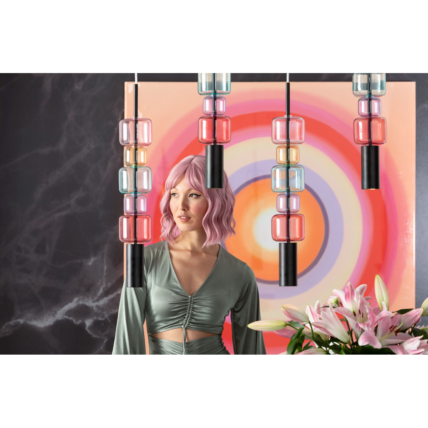 Zauberhafte Lichtspiele mit zartem Glas erleben Sie mit dieser filigranen Pendelleuchte. Wie Glaskunst reihen sich pastellfarbene Glaselemente über den schwarzen Kapseln aus Metall mit den Leuchtmitteln. Diese Esszimmer-Lampe setzt Ihren Esstisch gezielt in Szene. Dabei passt die Designer-Leuchte sehr gut zu jedem modernen Esstisch, sei er aus Glas, Metall oder Holz. Ein Tipp unserer Stylisten: Kreativ und individuell ist die Hängung einer breiten Leuchte über einem Sideboard. 230 V, 50/60 Hz, Fassung GU10, Anzahl Leuchtmittel 5, max. 5 Watt, Leuchtmittel nicht inklusive, Leuchtmittel austauschbar