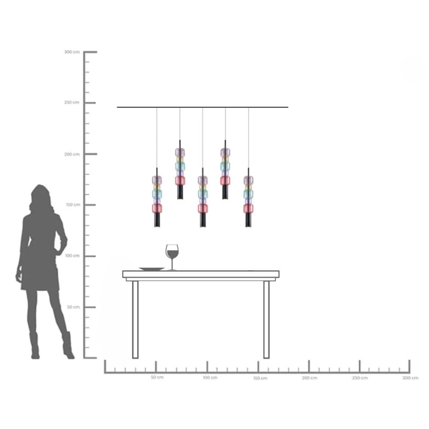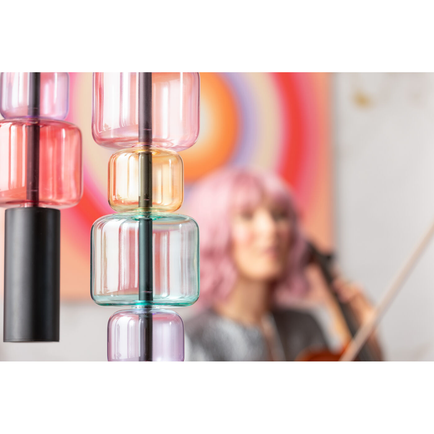 - Hängelampe aus farbigem Glas mit 5 Lampenschirmen mit Spotcharakter, 61 x 100 x 10 Zentimeter (H/B/T)