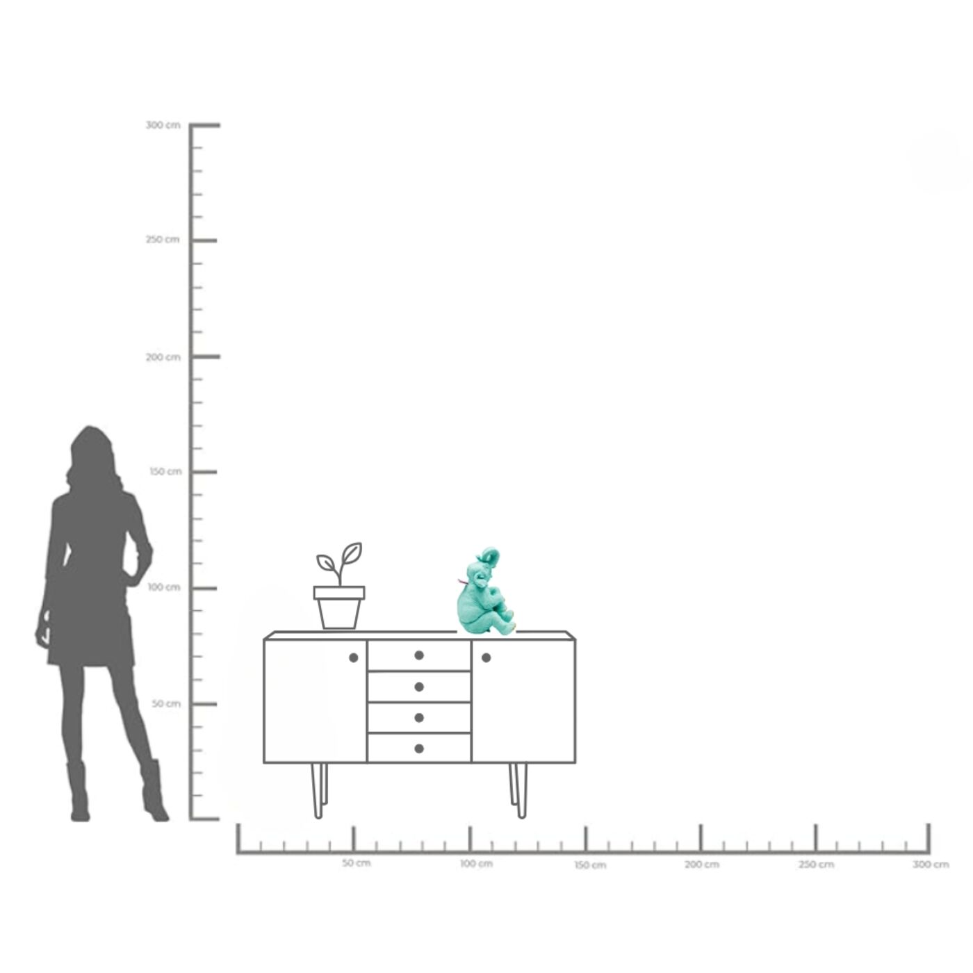 - Der Elefant in strahlendem Türkis sorgt mit seinem herzlichen Lachen garantiert für gute Laune