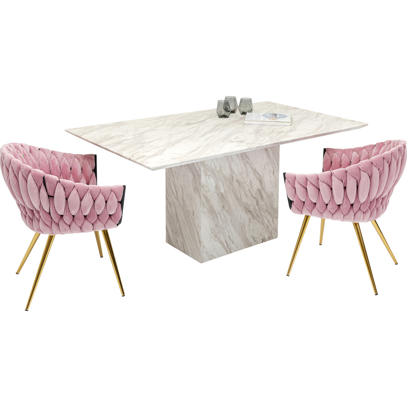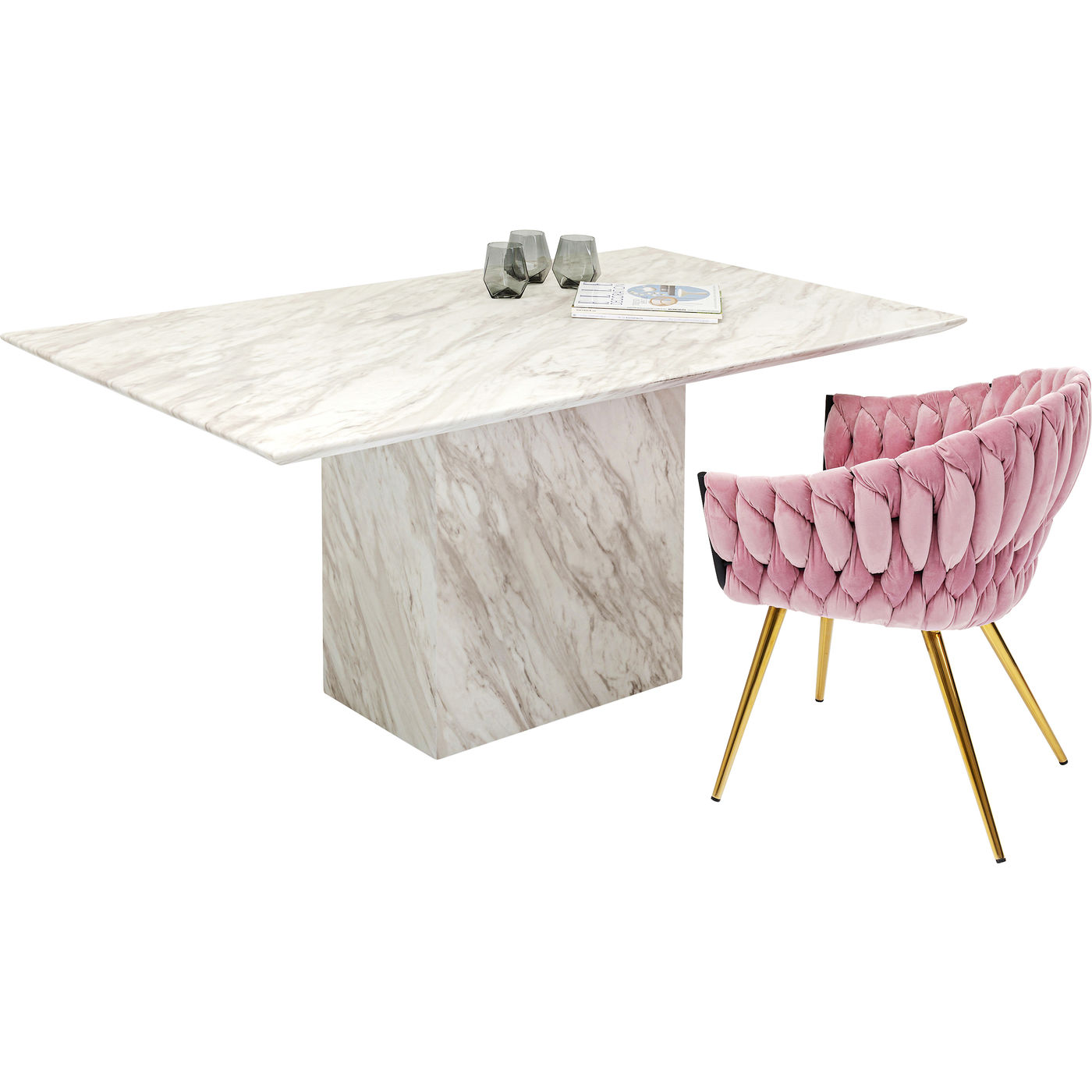 Mit seinem Tischfuß in Form eines Quaders und dem Allover Look in beigefarbenem, echtem Marmor zieht dieser Esszimmer-Tisch magnetisch alle Blicke auf sich. Dieses minimalistische Designer-Möbel von KARE macht alle modernen Wohnstile mit und verleiht Ihrem Zuhause diskreten Luxus, der über viele Jahre Ihren Wohnstil bereichert. Vervollständigen Sie Ihre Esszimmereinrichtung mit passenden Stühlen. Zu diesem Marmortisch sehen mit Textil gepolsterte Esstisch-Stühle besonders attraktiv aus.