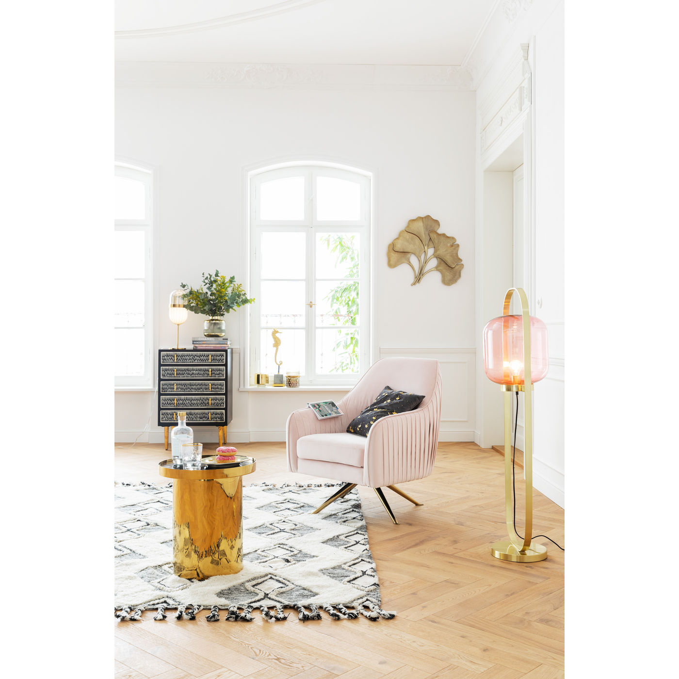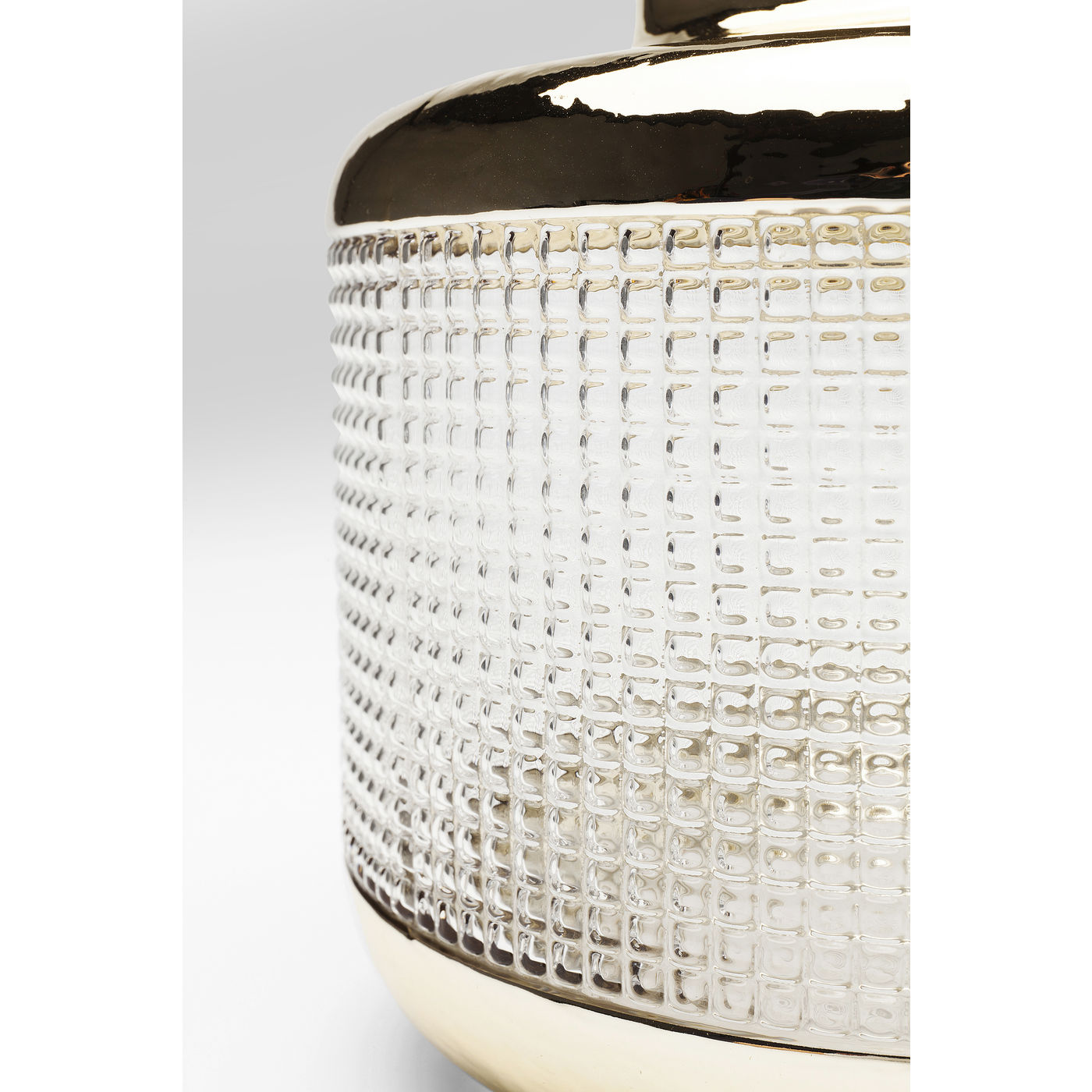 Diese Vase verbindet spannungsvoll strukturierte Glasoptik mit glamourösem Goldfinish – ein Design-Highlight mit royaler Ausstrahlung. Das stilvolle Zusammenspiel aus Transparenz und metallischem Glanz verleiht jedem Raum eine edle Note und sorgt für subtile Eyecatcher-Momente. Solo als dekoratives Objekt auf einem Sideboard oder gefüllt mit Trockenblumen auf dem Esstisch entfaltet sie ihren besonderen Reiz. In Kombination mit weiteren Accessoires in Messing oder Marmor entsteht ein harmonisches Gesamtbild mit luxuriösem Touch. Perfekt für moderne Interieurs, die Wert auf feine Details und raffiniertes Design legen.