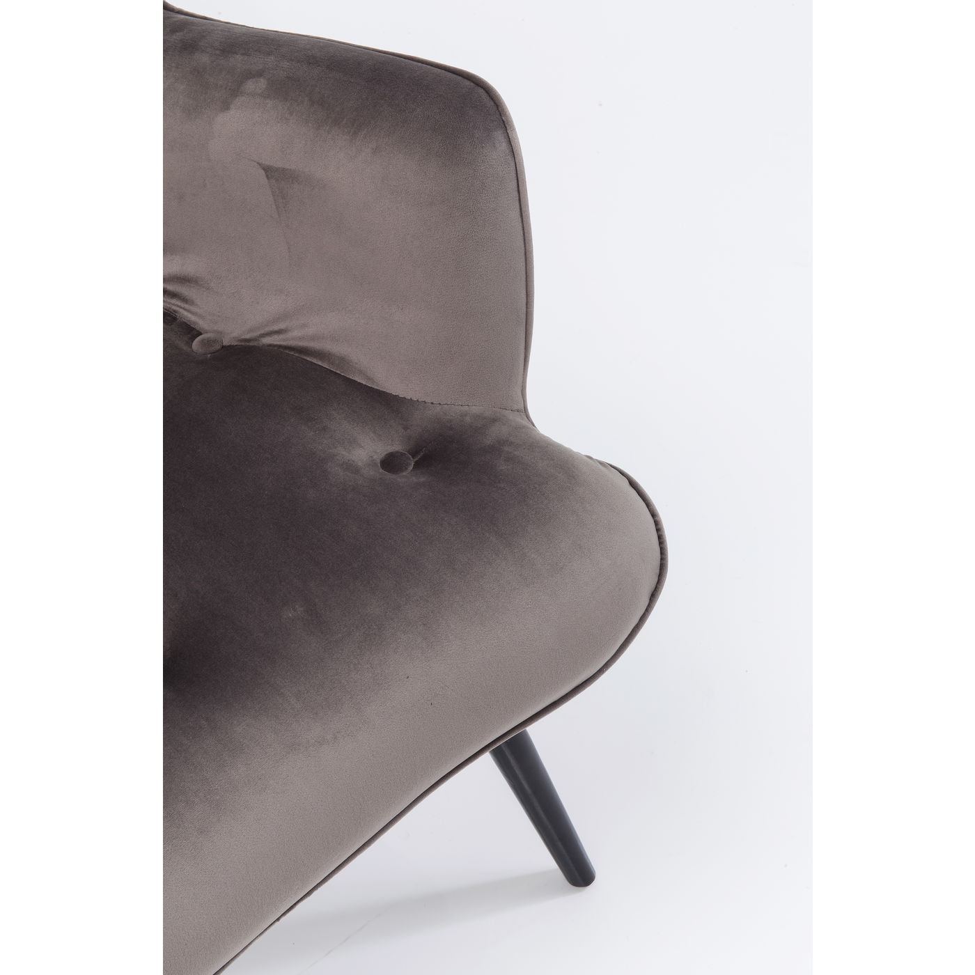 Stylish & comfortable. A charming armchair in a trendy retro design offering real comfort. Soft polyester velvet cover. Decorative upholstered buttons on backrest and seat. Perfect for upscale living. Other versions available. Made in the EU.