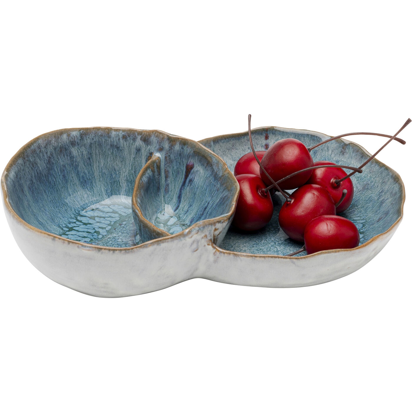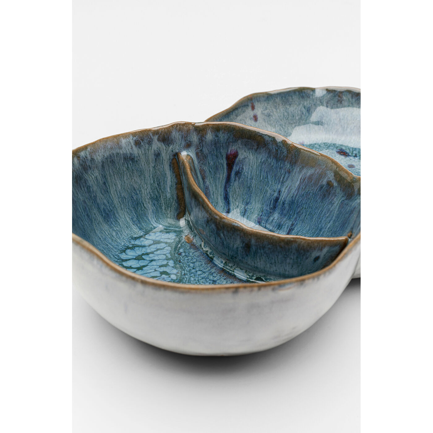 - Small porcelain dip bowls in blue and brown, 4.6 x 12 x 21.7 centimetres (H/W/D)