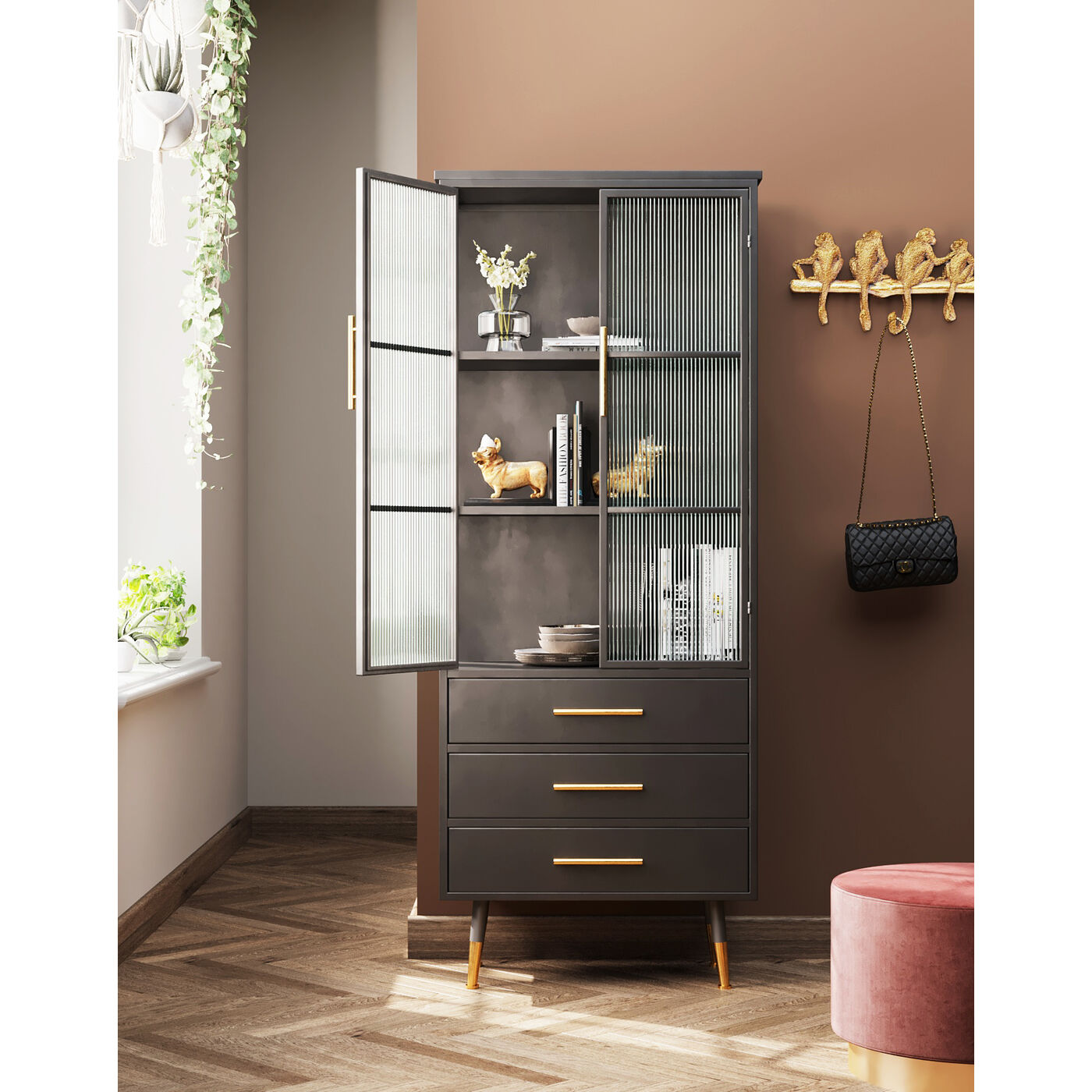 Coated steel and glass - these are the ingredients that define the casual look of this tall cabinet. While the frame of this storage wonder is made of steel and is reminiscent of industrial design, the fronts and sides are made of grooved glass - this gives the cabinet a certain elegance and lightness. The La Gomera series, which includes various cabinets and chests of drawers, is characterised by a mix of steel and glass materials, distinctive lines and slightly flared feet.
