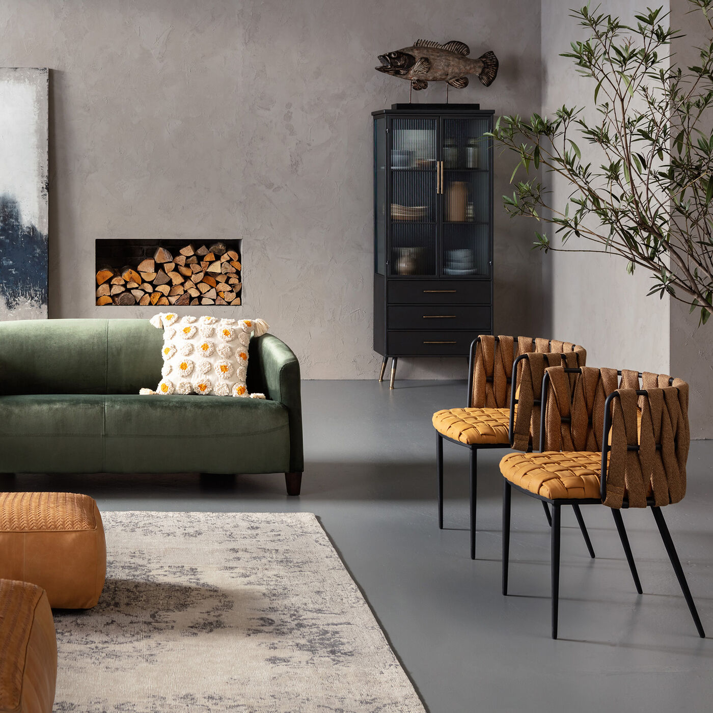 - Decorative detail: the brass-coloured handles and feet that lend the industrial design a refined touch