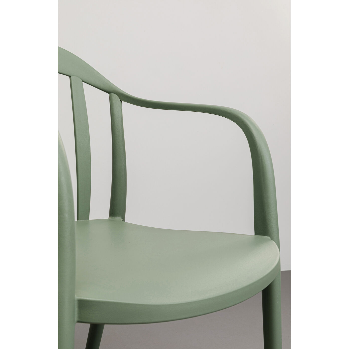 This trendy armchair in modern green brings a touch of nature to any outdoor area. The modern design and harmonious color make it the perfect highlight for the patio or balcony. The hard-wearing material is particularly easy to clean, while the curved backrest and comfortable armrests ensure a relaxing seating experience. Thanks to its low weight, the chair is easy to move and can be perfectly integrated into any outdoor corner - for a stylish ambience in any weather