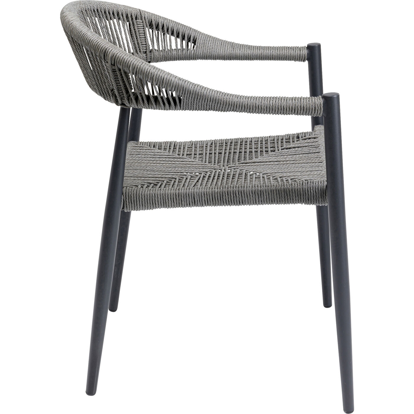 The grey Palma armchair spreads Mediterranean flair. This is due to its stylish design with the backrest and seat made of wickerwork in the colour grey. With its frame made of aluminium, the wicker chair not only stands out for its sturdy shape. With a weight of only 3.3 kg the armchair is also easy to move. Its shape and the seat height of 47 cm promise pleasant seating comfort. At 65 cm the armrests have a height that fits under most tables. The modern design of the chair makes it an attractive seating option not just for the garden and balcony. This timelessly beautiful armchair also cuts a fine figure indoors, for example at the dining table.