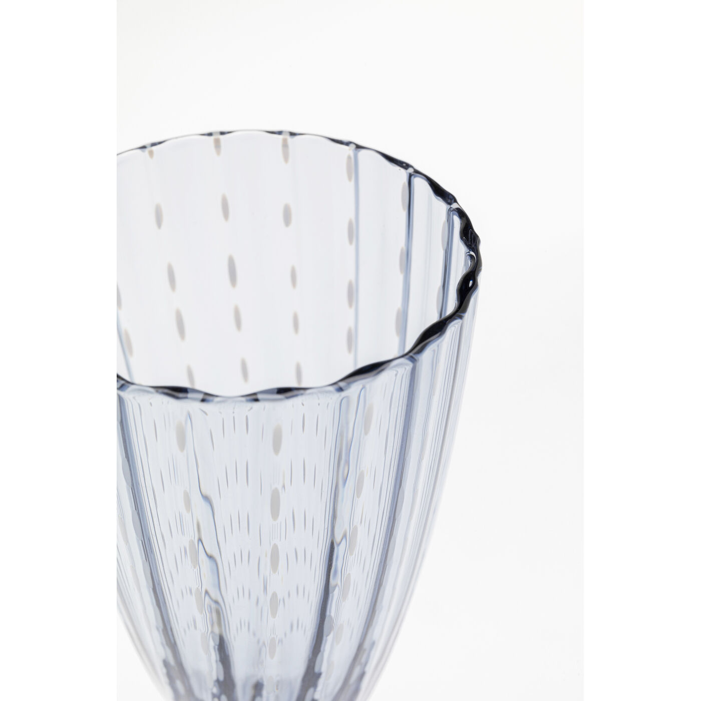 The glasses in the Clue series bring a breath of fresh air to any dining table with their clear, elegant shape and lively, riffled surface. The delicate blue, decorated with fine speckles in white, exudes Mediterranean flair and has a pleasantly light and stylish effect. The sophisticated texture catches the light in a fascinating way and ensures a lively play of colors with every sip. Ideal for summer cocktails or a relaxed dinner, the set can be perfectly combined with natural materials such as linen, wood or ceramics to create charming accents in any setting.
