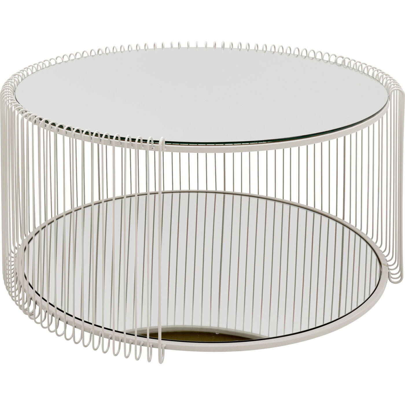- Round coffee table with glass top in greige, 40 x 80 x 77.5 centimeters (H/W/D)