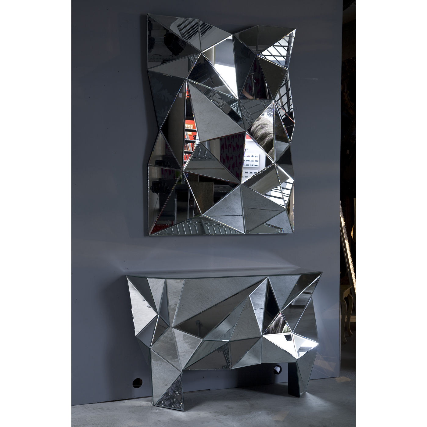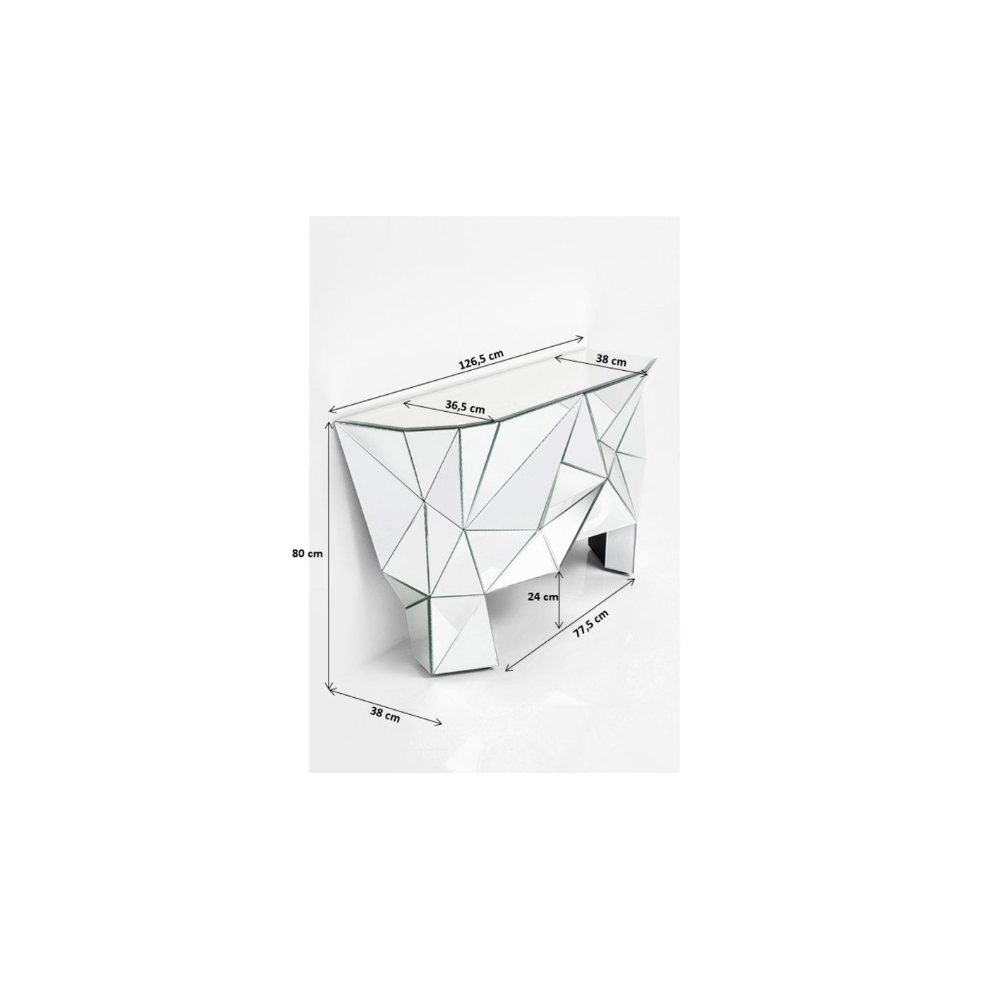 - Mirrored console with three-dimensional fronts, 80 x 126.5 x 38 centimeters (H/W/D)