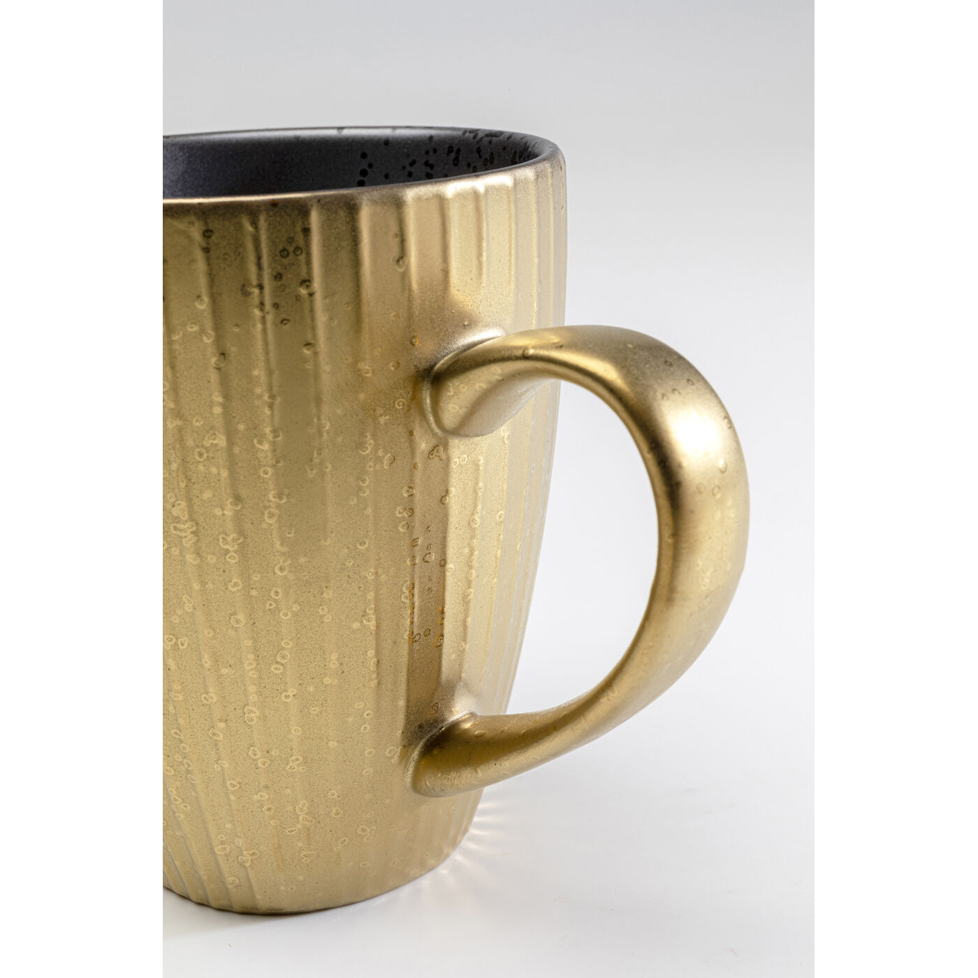 - The contrast between the shimmering gold exterior and the black interior gives the cup a certain something