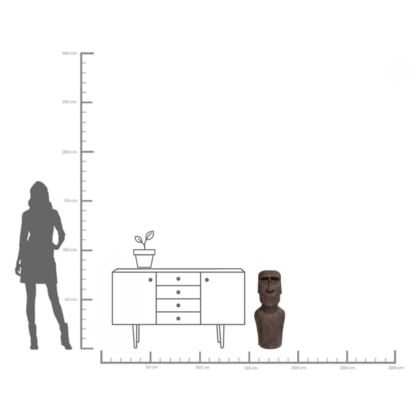 A touch of mystical history meets modern home design: this decorative object in the style of the legendary Moai statues brings monumental character into the home. With its antique-looking surface and lovingly detailed design, it looks like a found object from a bygone era. The impressive size ensures a strong presence - ideal as an eye-catcher on the floor, between large vases or embedded in an ensemble of plants. The figure looks particularly harmonious when mixed with natural materials or in an ethno boho style. A unique piece that tells stories and also serves as an artistic style statement.