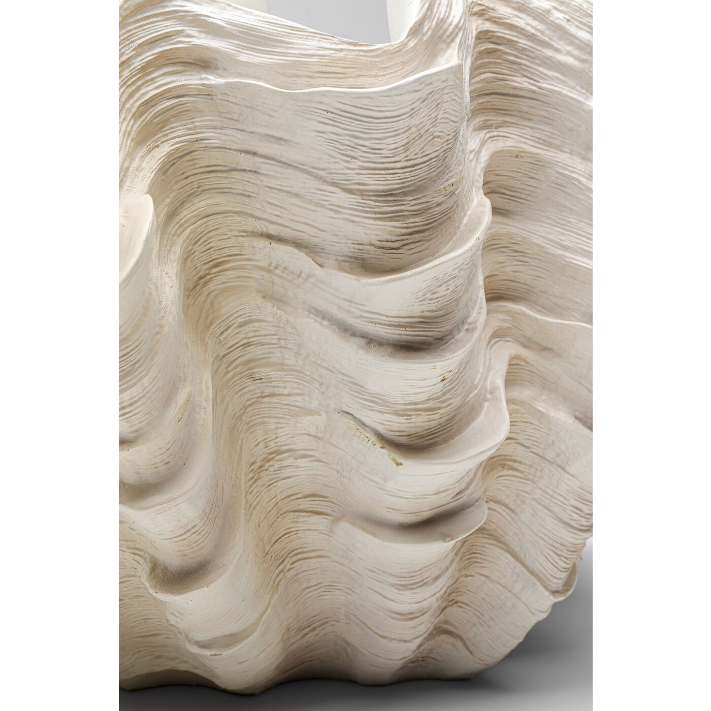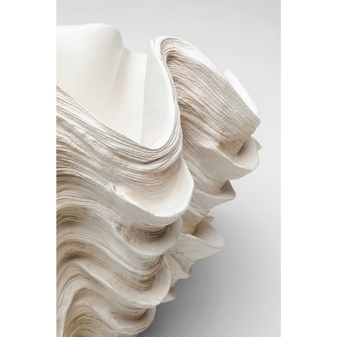 This large decorative vase in white combines elegance and natural shapes. Its artistic shell design is reminiscent of warm days at the beach and brings back sunny memories. The finely crafted surface gives it a special feel and adds subtle highlights to the room. As a decorative statement piece, it introduces a modern, maritime touch to your home and creates a stylish ambience full of calm and timeless beauty.