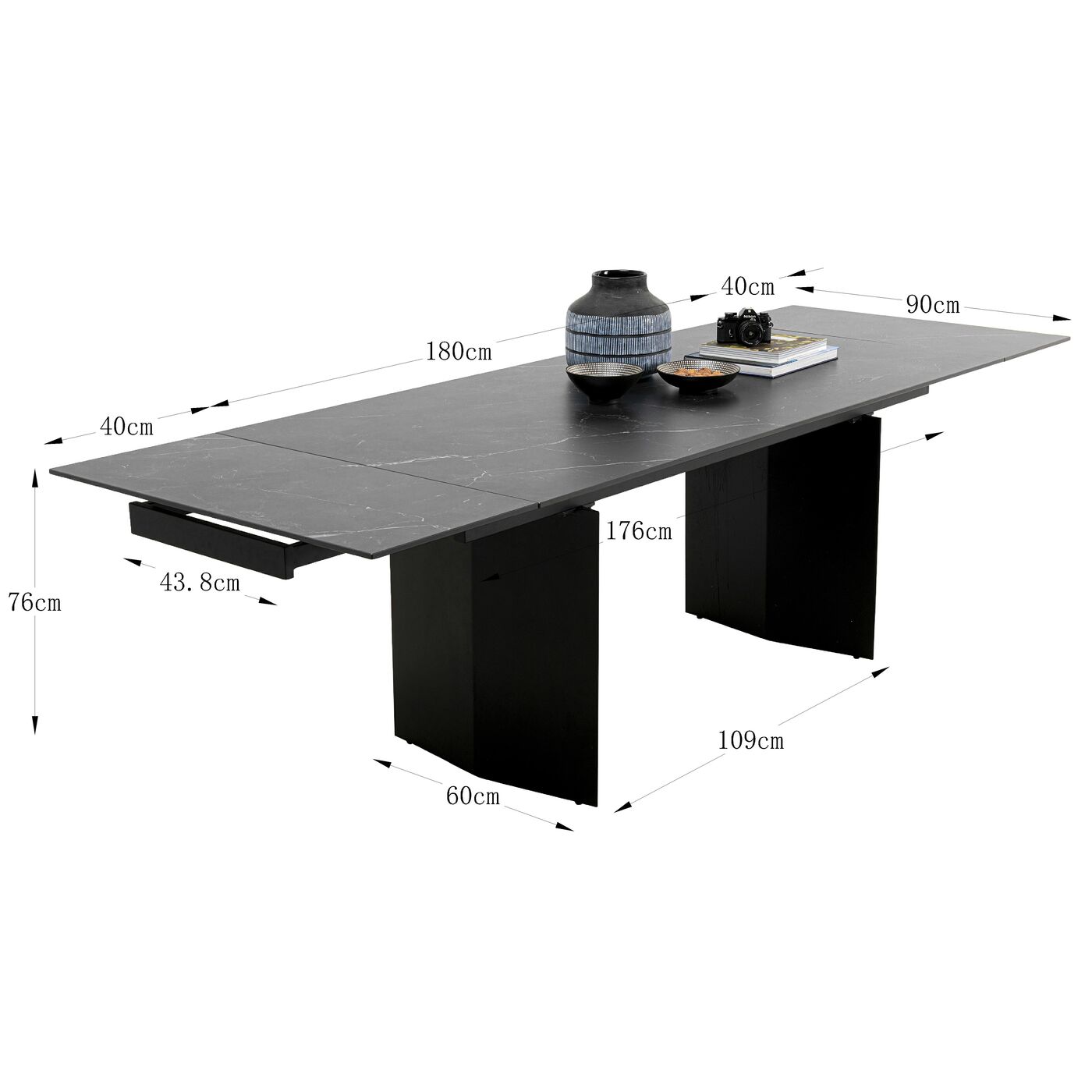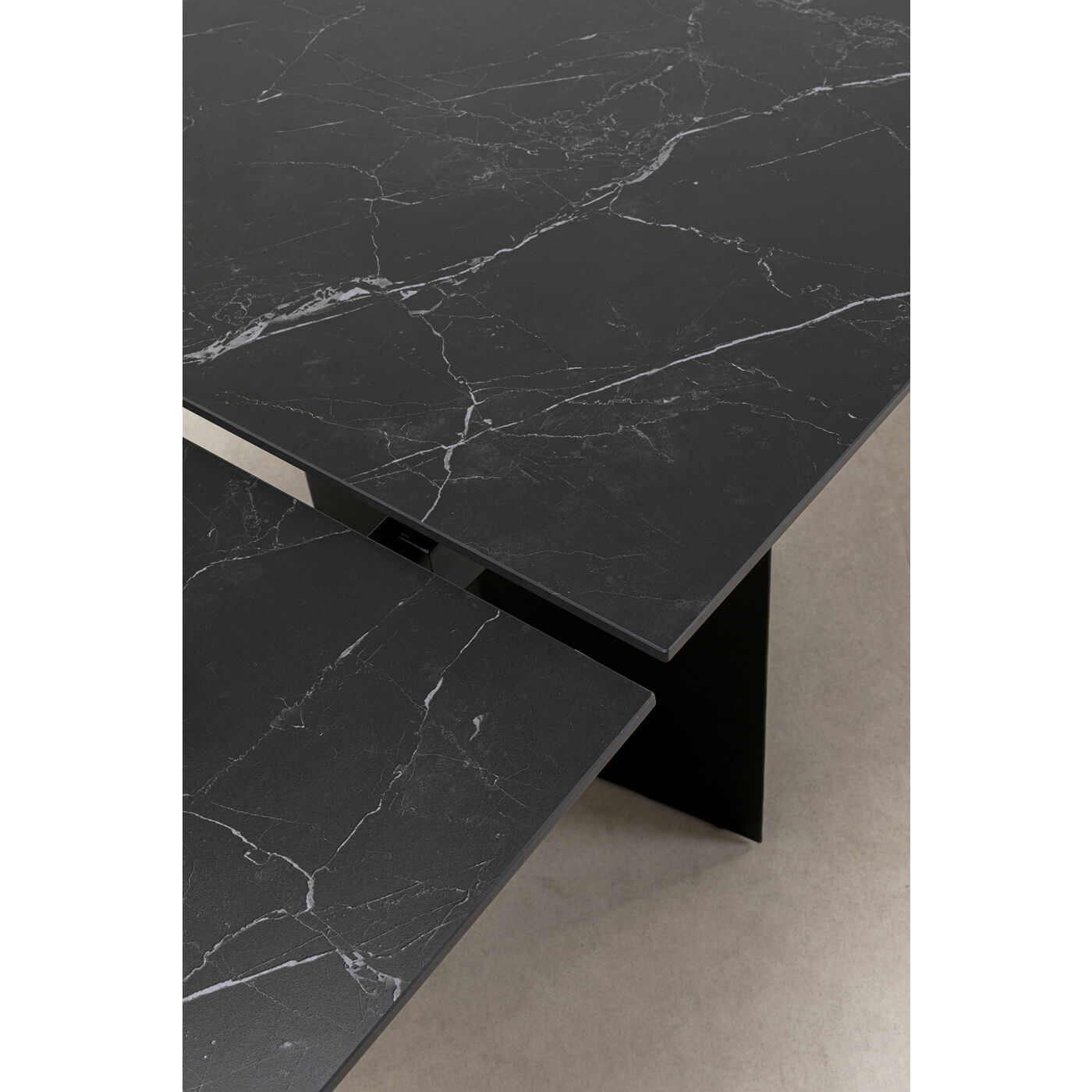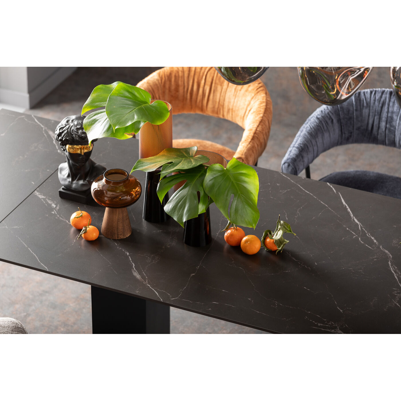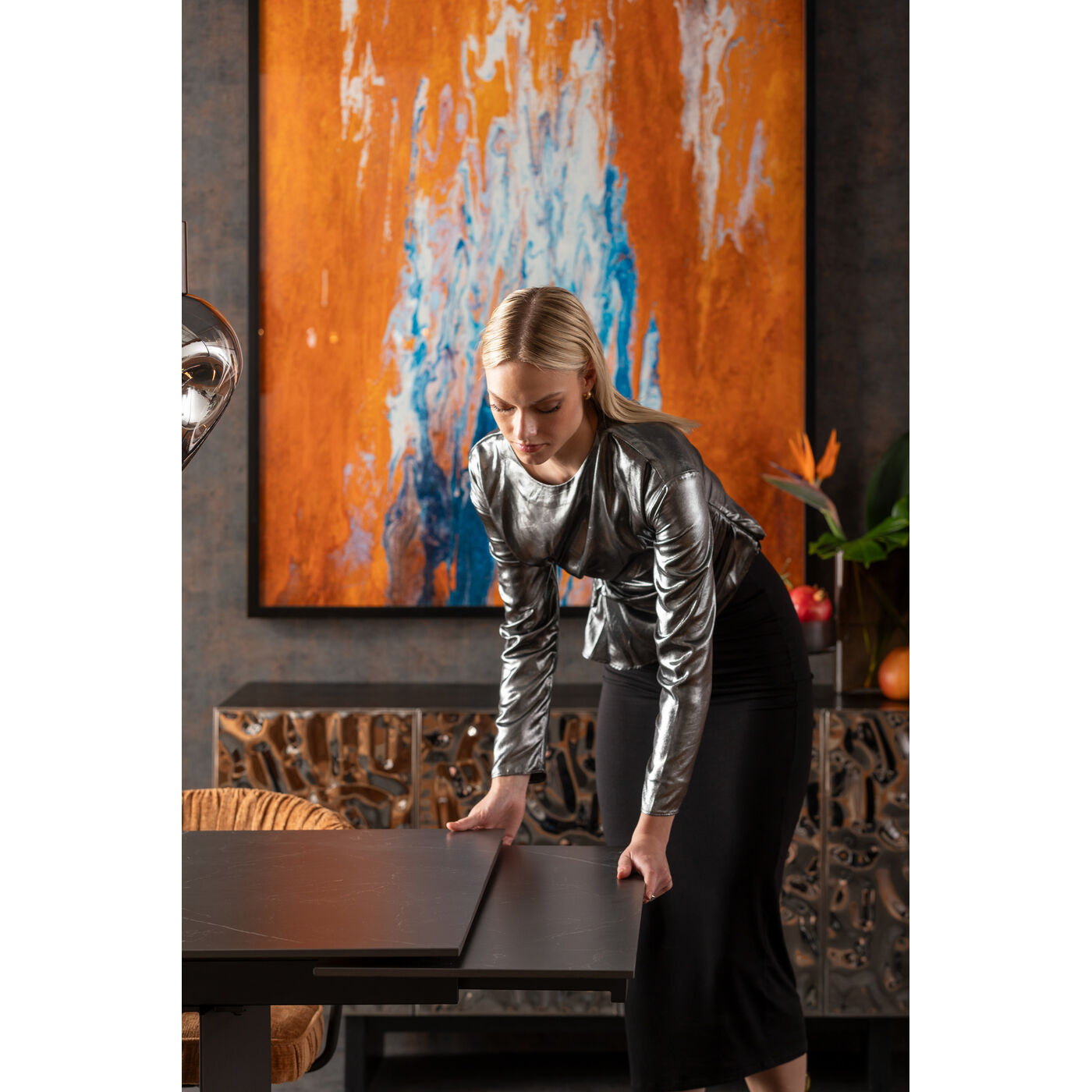 Looks good and is also functional: this extending table excels in both respects. When a few more guests visit than planned, the table can easily be extended to 260 cm, allowing room for 12 people to enjoy a legendary dinner. With its black finish, elegant sides and ceramic top this dining room table sets a beautiful colour contrast in the room on the one hand. At the same time you absolutely can’t go wrong with this table and its modern and classic styling. This rectangular table is ideal for the dining room, the living room or even for a meeting in the office.