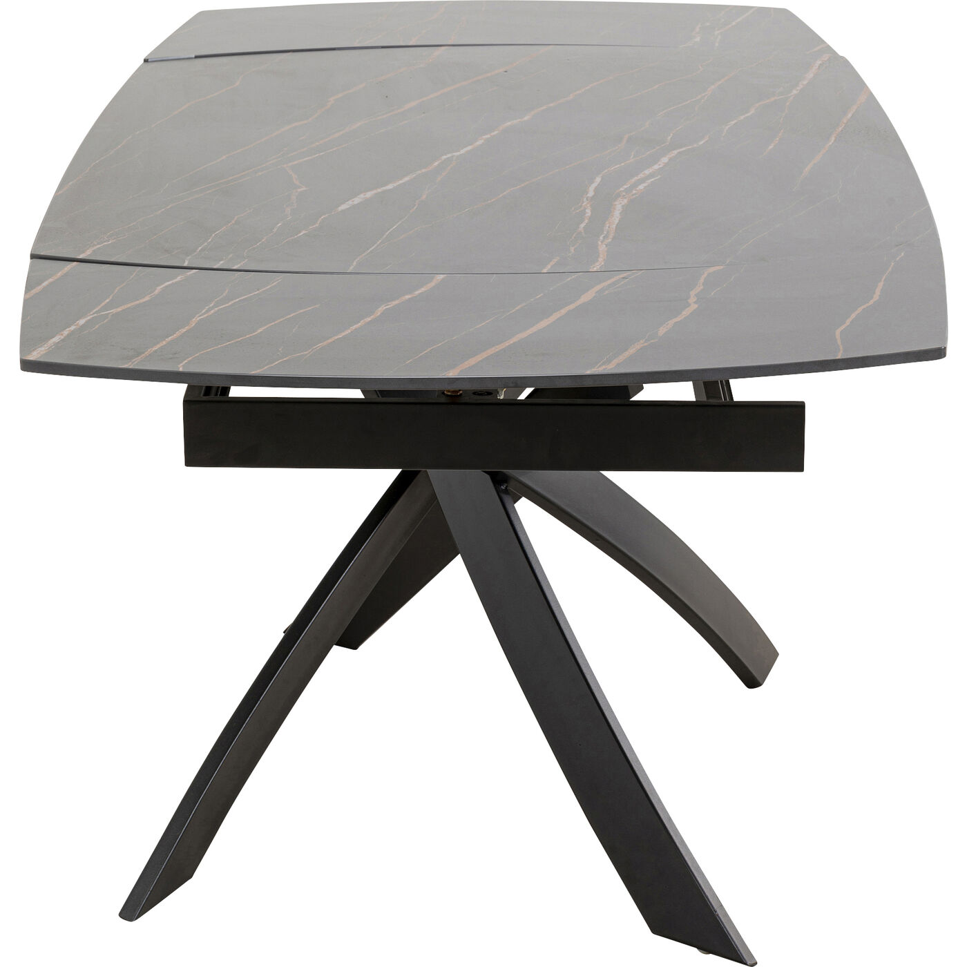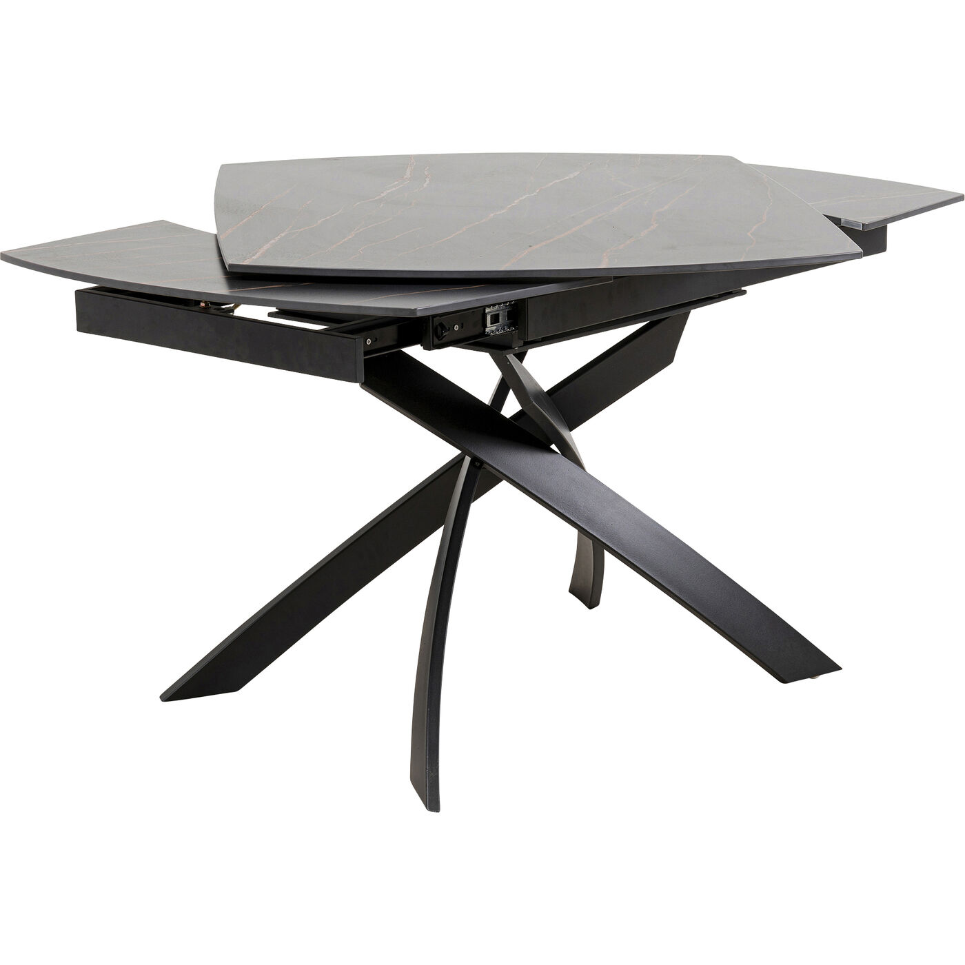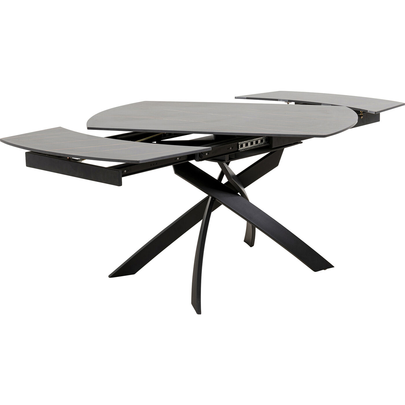 If you are looking for a practical table that is also a real eye-catcher, you will be thrilled with the Twist extending table. The ceramic top can be easily extended from 120 - 180 cm thanks to a clever swivel mechanism. This means you can invite the whole family to celebrations. Underneath the high-quality ceramic layer is a glass top made of safety glass, which guarantees special stability. The black frame is absolutely unique thanks to its curved shape. The table is an essential centre around which life takes place in your home. If this focal point then also looks unique, modern and stylish, there are no more wishes left unfulfilled.