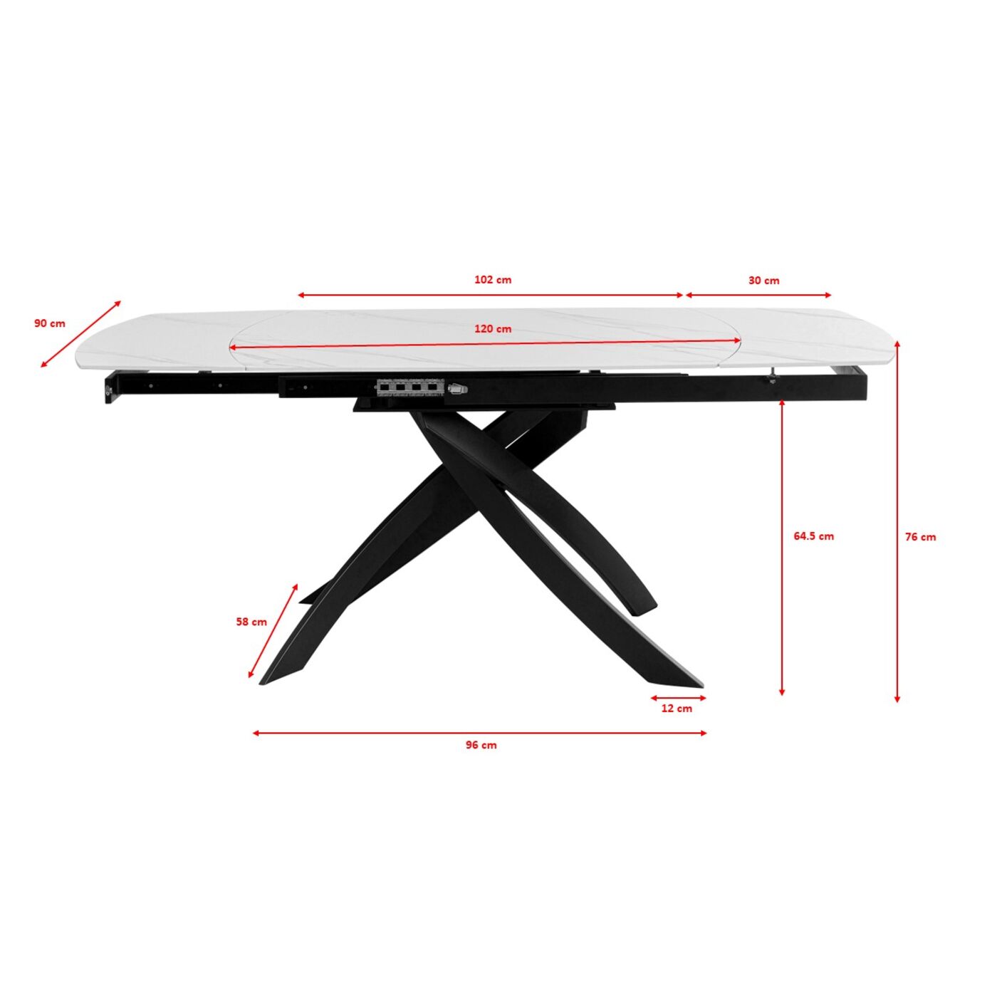 - Black extendable dining table 76x120 or 180x90 cm ( H/W/D) made of metal with a ceramic top