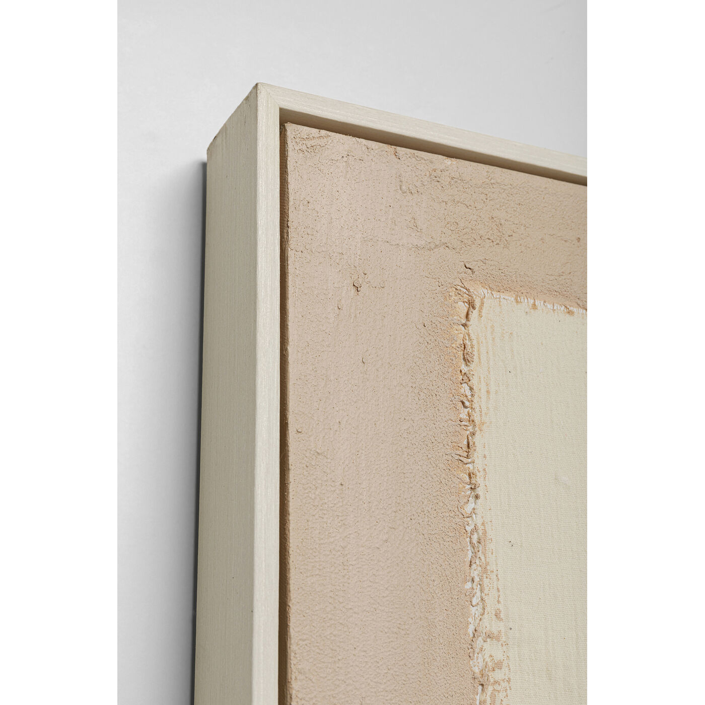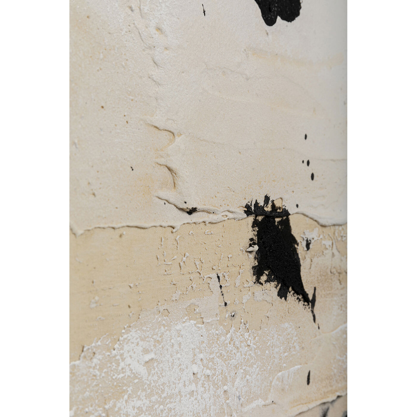 Unique, hand-painted pictures on canvas add an incomparable touch of individuality to the home. This large-format painting measuring 122 x 122 cm in natural colours such as cream, beige and natural white with subtle black highlights will create a calming atmosphere and generate an artistic dimension within the room.