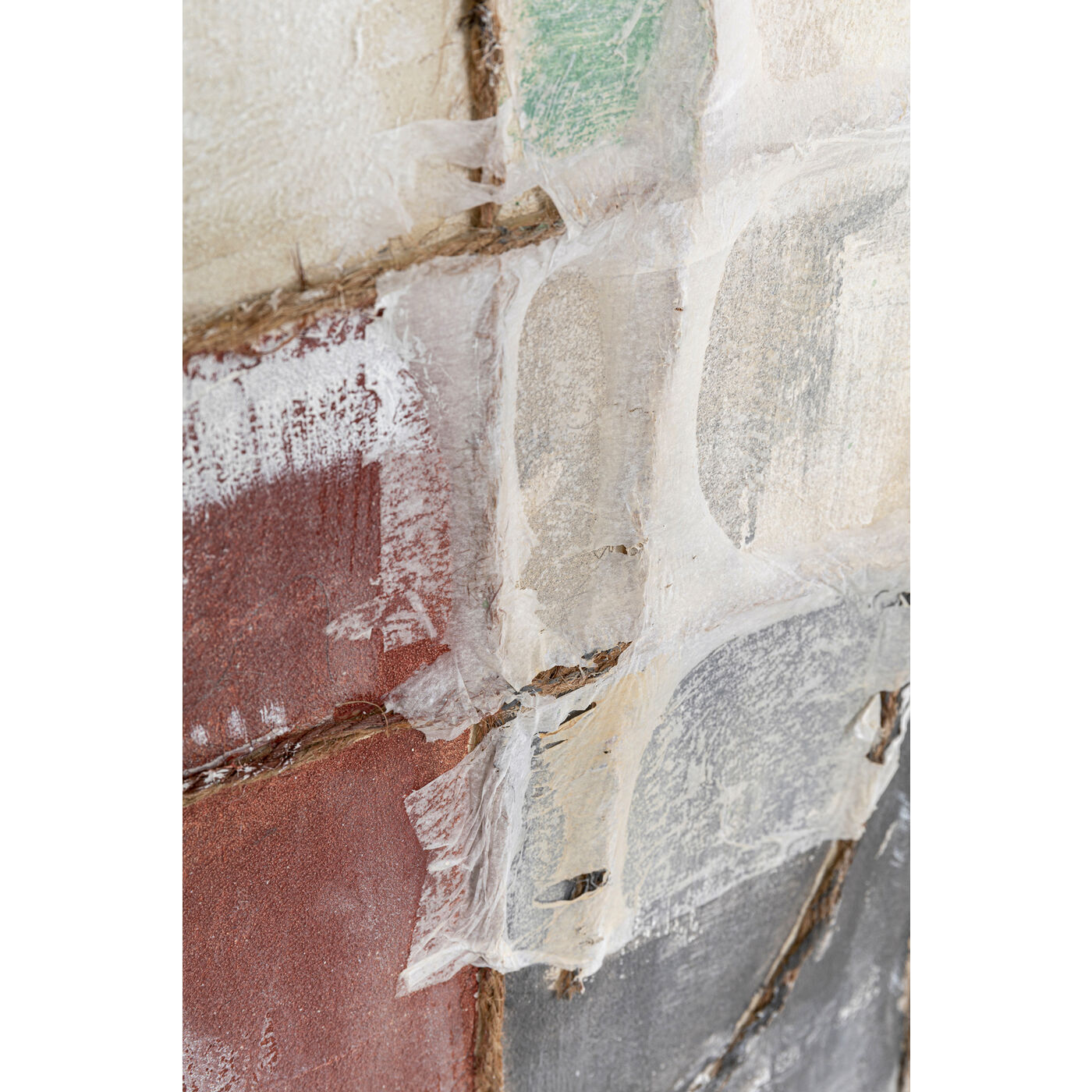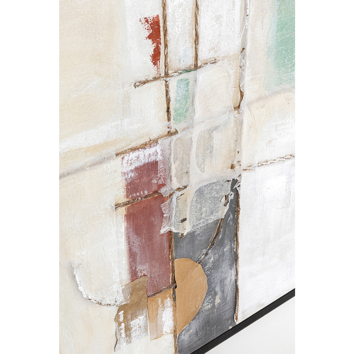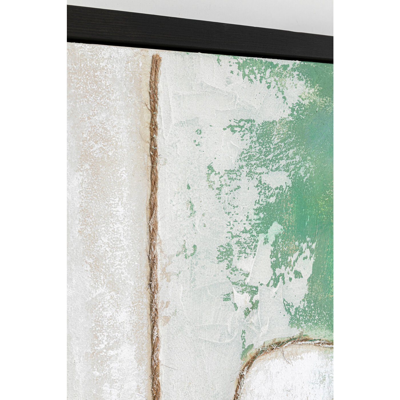 On rainy days, this jewel for the wall saves you the trip to the museum. The abstract acrylic painting is unique and looks lively and exciting thanks to the textured surface. When looking at the surfaces, shapes and colors, the thoughts can go on a journey. The bright colours in predominantly white, beige and a natural green create a harmonious and relaxing atmosphere. Enrich the empty wall in the living room with this stimulating motif. Or is the mural perhaps the new addition to your personal gallery at home?