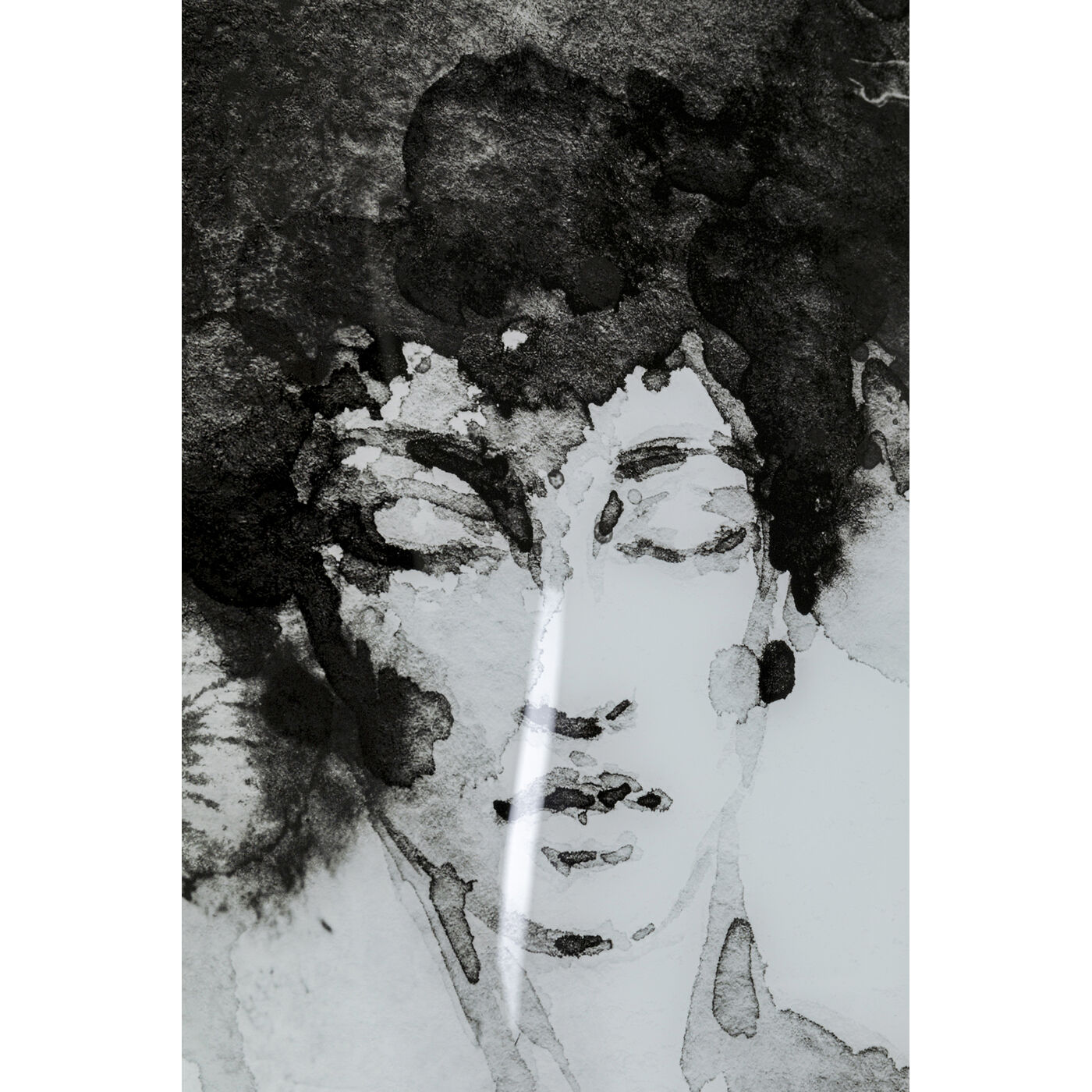 - Large glass picture in black and white tones with a portrait, 150/100x04cm (H/W/D)