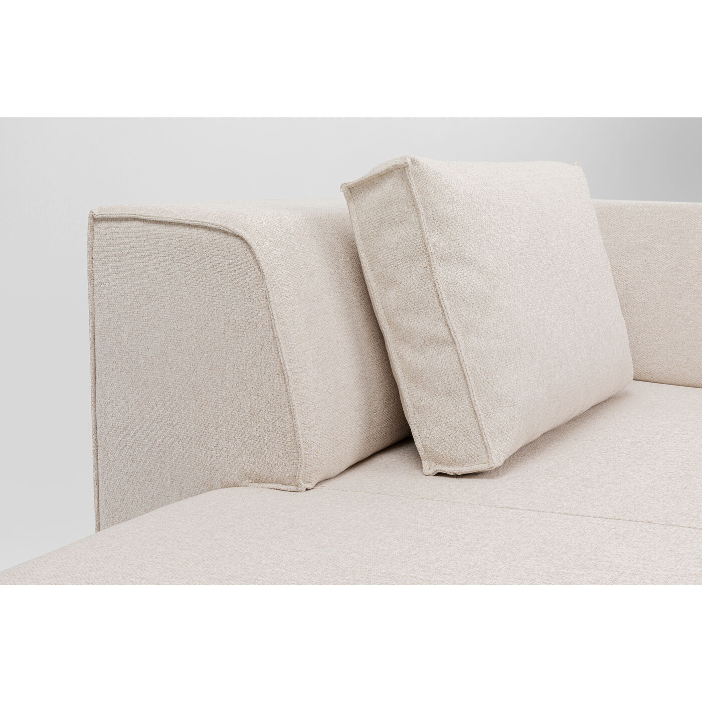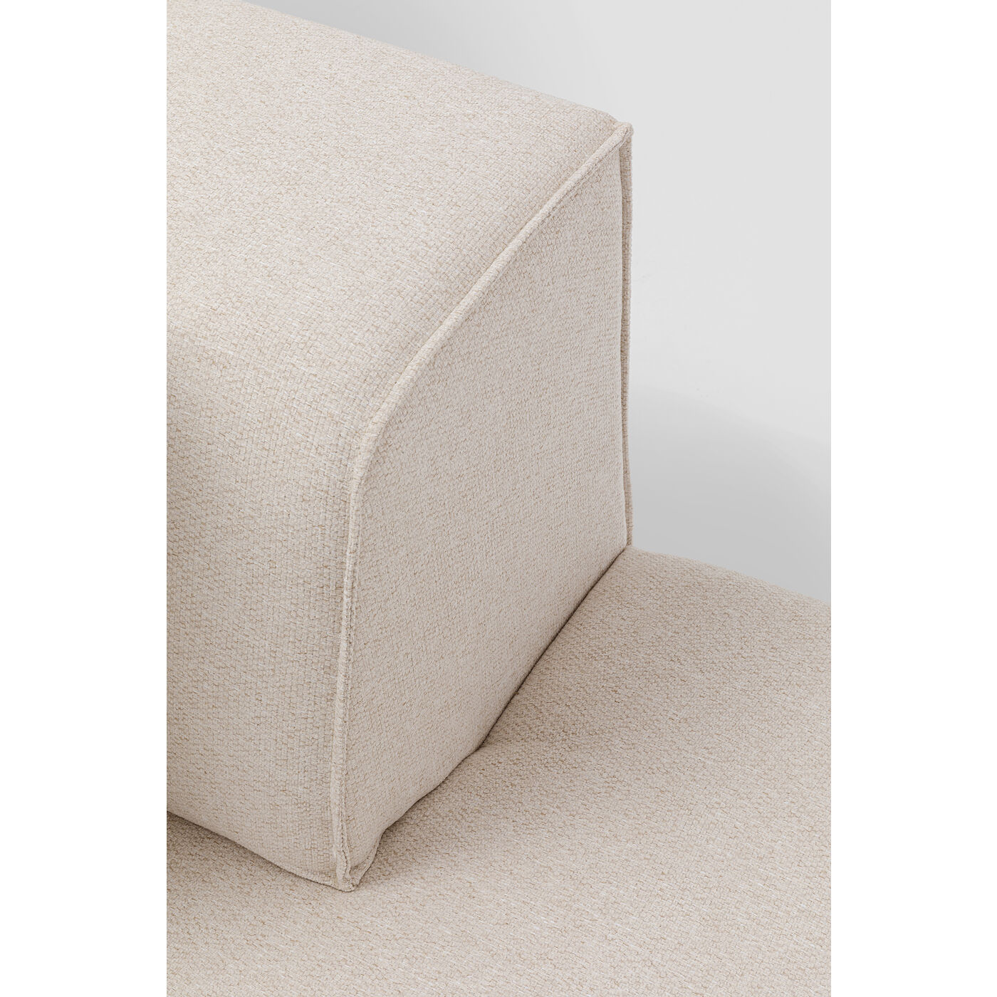 - Ottoman from the Infinity modular sofa system with a soft fabric cover in light beige for the left-hand sofa side, measuring 70x182x118cm