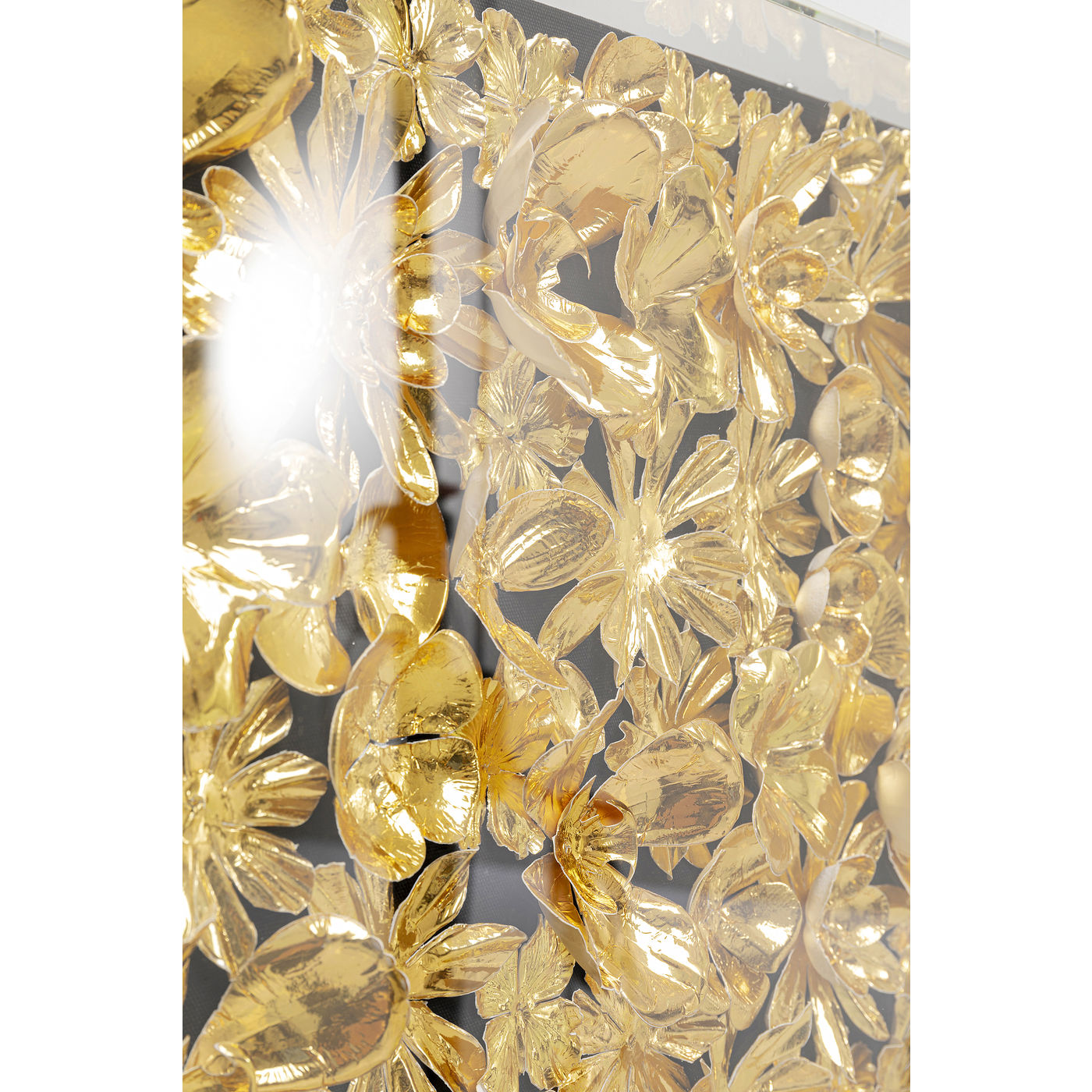 The decorative frame is highlighted with a multitude of gold-coloured stones, so that an image of scattered flowers is created. It hangs by means of a chain at the upper edge of the frame. Model is also available in white.For wall fixing Horizontal und verticalCanvas: Linen flax, Frame: Polymethylmethacrylate (acrylic glass), Decoration: Paper, Back panel: Medium density fibreboard (MDF) Lacquered, For wall fixing Horizontal und vertical