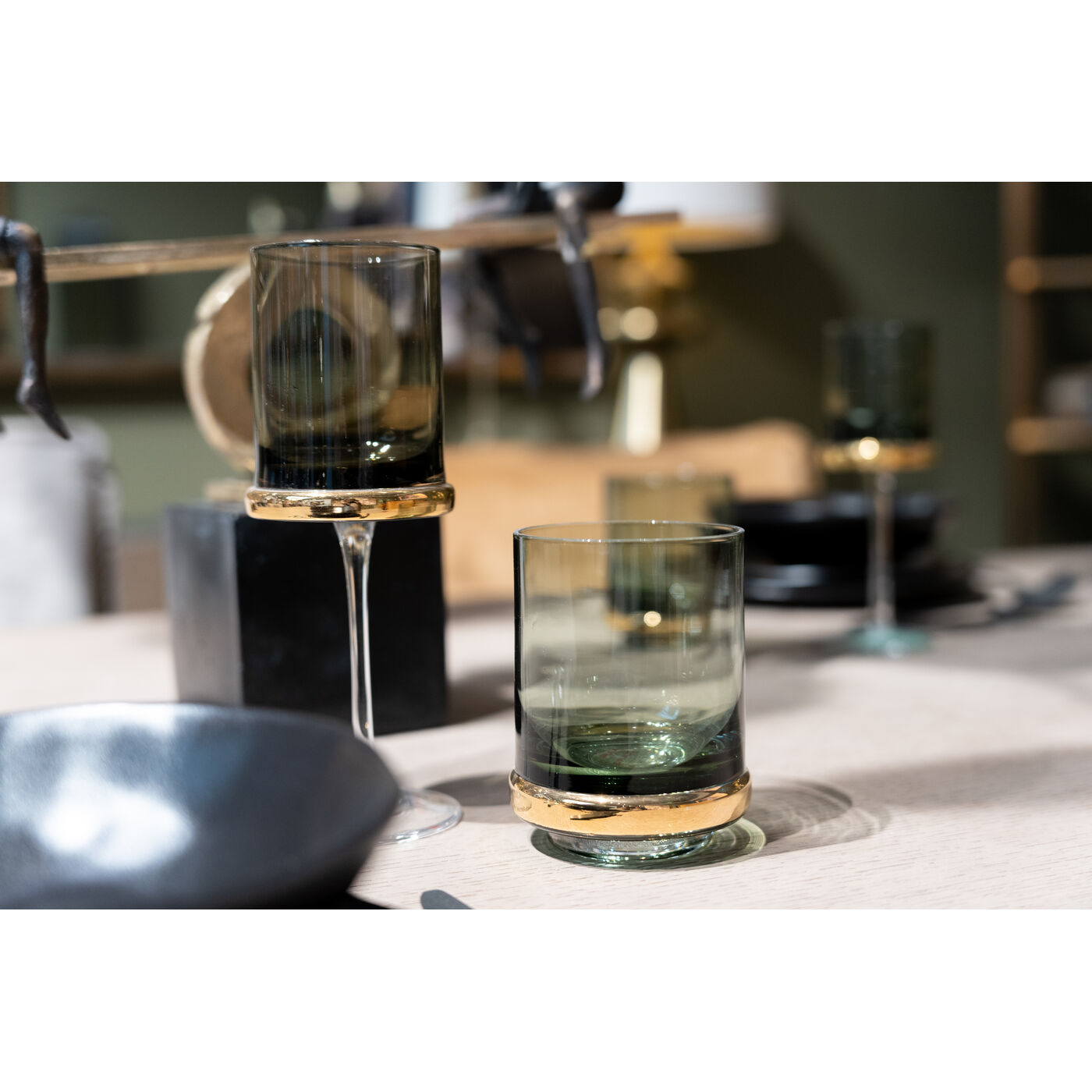 A statement for stylish enjoyment - our glasses from the Innocent Smoke range combine elegant design with sophisticated coloring. The deep green, lightly tinted glass adds a special touch to any drink, while golden accents create a luxurious look. The linear shape brings modernity into play and makes the glasses versatile: perfect for elegant dinner evenings, festive celebrations or a stylish after-work drink. Combined with dark ceramic or brass-colored accessories, they create a harmonious overall look that enhances any table.