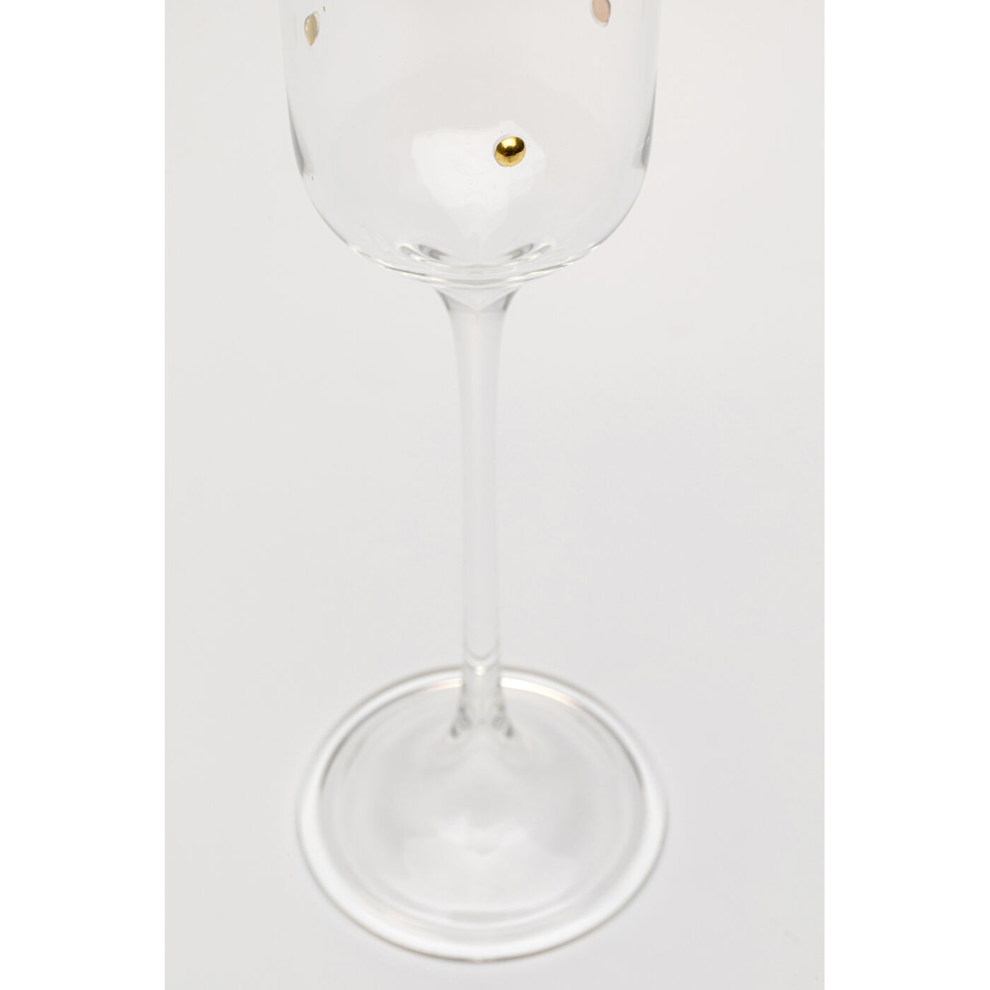 Ein echtes Schmuckstück für den Esstisch – dieses Trinkglas verzaubert mit feinen, goldenen Pünktchen, die dem klaren Glas eine sanft glamouröse Note verleihen. Die zarte Applikation schimmert dezent im Licht und macht jedes Getränk zum stilvollen Genussmoment. Mit seiner eleganten Optik passt das Glas sowohl zu festlich gedeckten Tafeln als auch zu modernen Everyday-Settings. Besonders edel wirkt es in Kombination mit Leinen, Naturmaterialien oder Accessoires in Messing oder Schwarz. Ein kleiner Blickfang mit großer Wirkung – perfekt, um dem Tisch das gewisse Etwas zu verleihen.