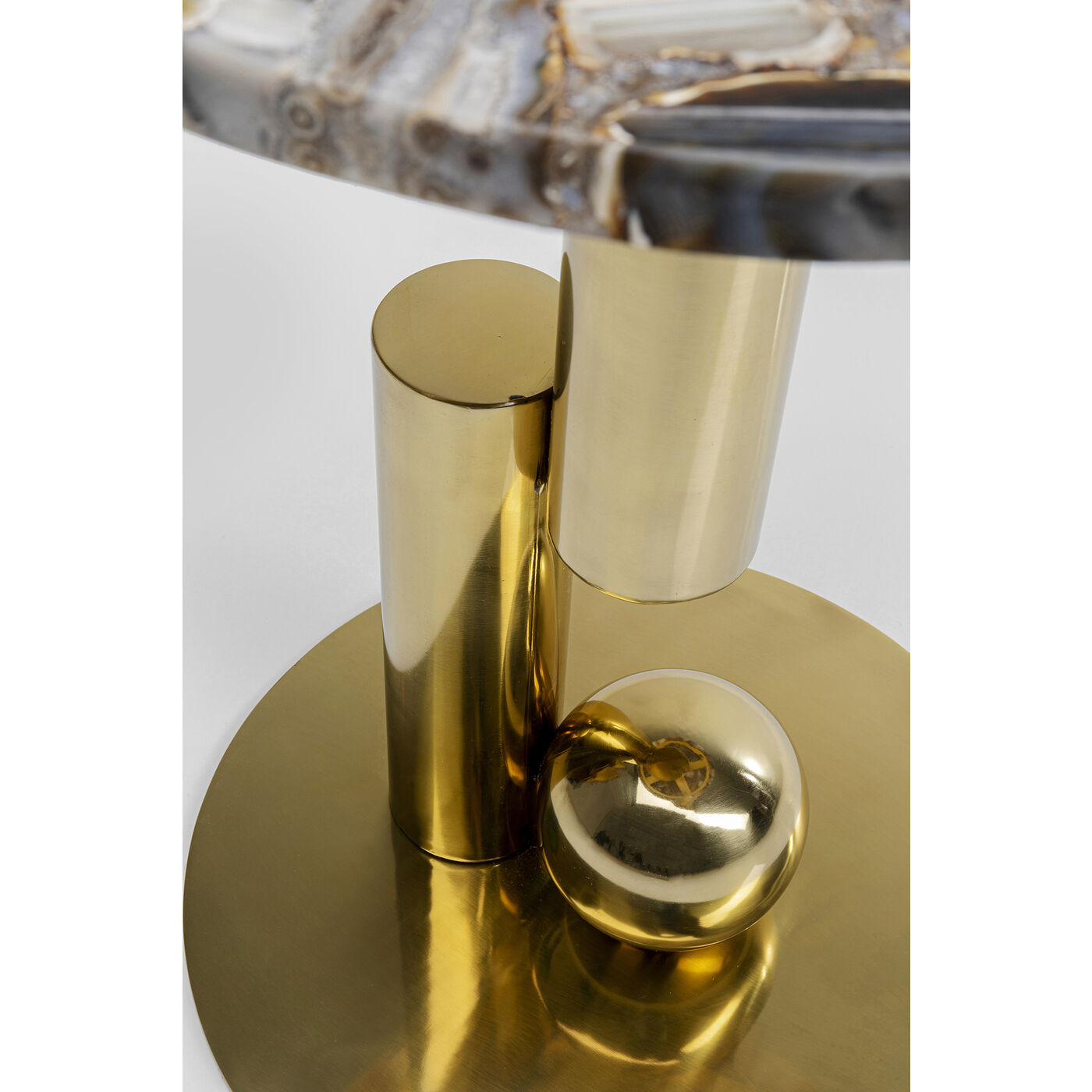 The round side table Agate Cut is an absolute highlight in any modern interior. The natural stone table top and the ornate lacquered stainless steel frame give it a unique look. Each piece is unique and exudes gallery flair through its artistic design. The small table is not only a decorative eye-catcher, but also offers a storage area for your items. Whether next to the wardrobe, the bed or sofa - the Agate Cut cuts a fine figure everywhere.