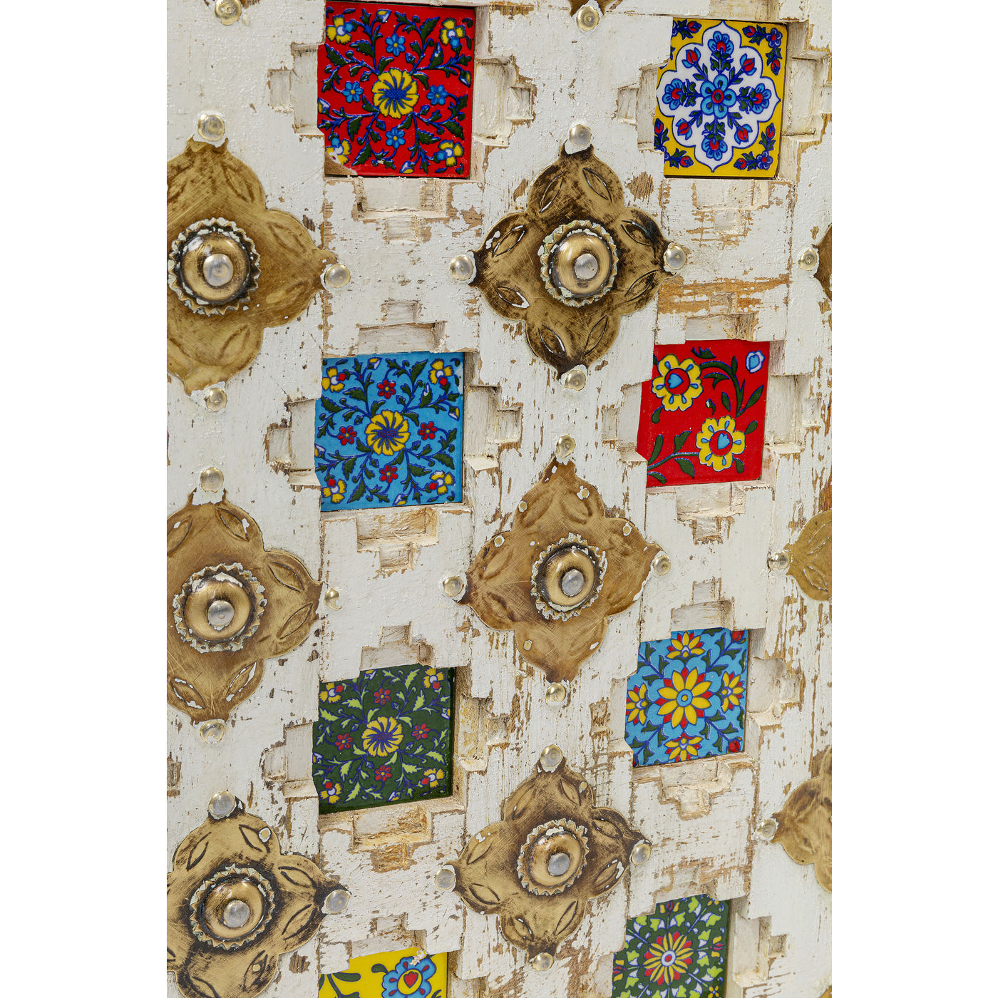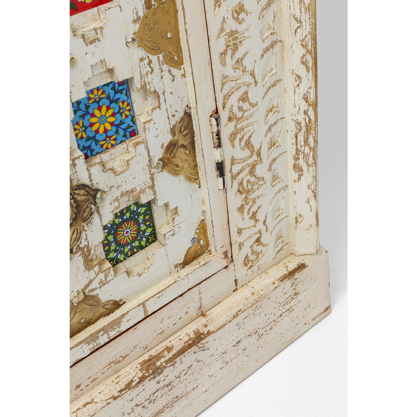 A real individualist, this real wood sideboard in antique style with its many colorfully patterned tiles. In the drawers and the decorated doors there is plenty of storage space that makes this sideboard so practical. Above all, however, this unique piece in shabby-chic brings atmosphere into the room.
