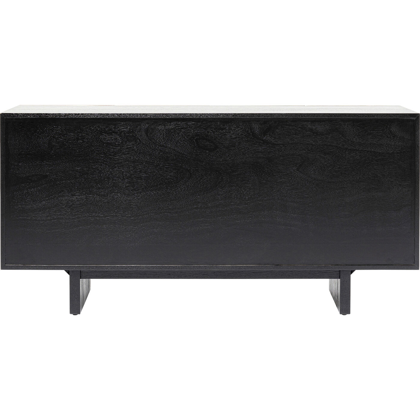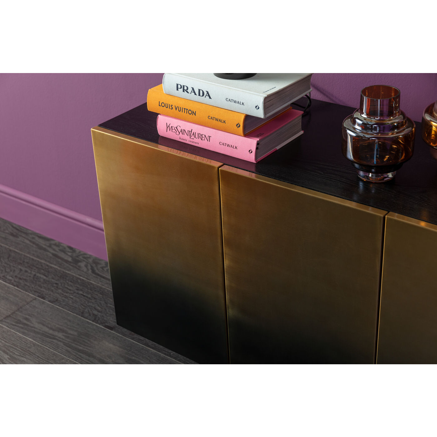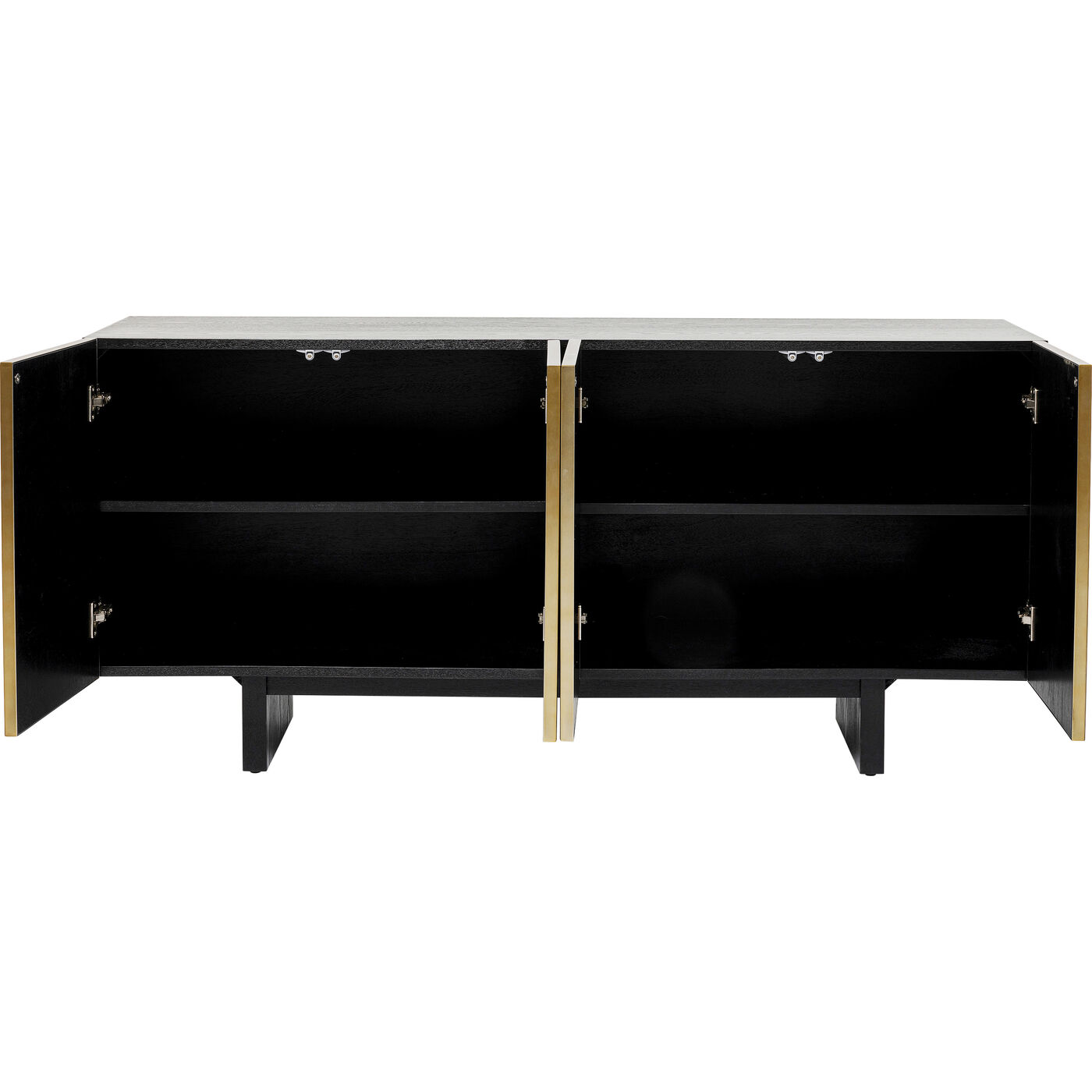 The KARE sideboard in a black and metallic finish makes a strong impression with its high-quality materials and unique look. Its front shimmers differently depending on the angle of the light. In addition, the attractive black frame and the body with black ash veneer not only have an elegant look, they both provide an unadorned frame for the front. In your living room this cube-like sideboard will attract all eyes like a work of art.
