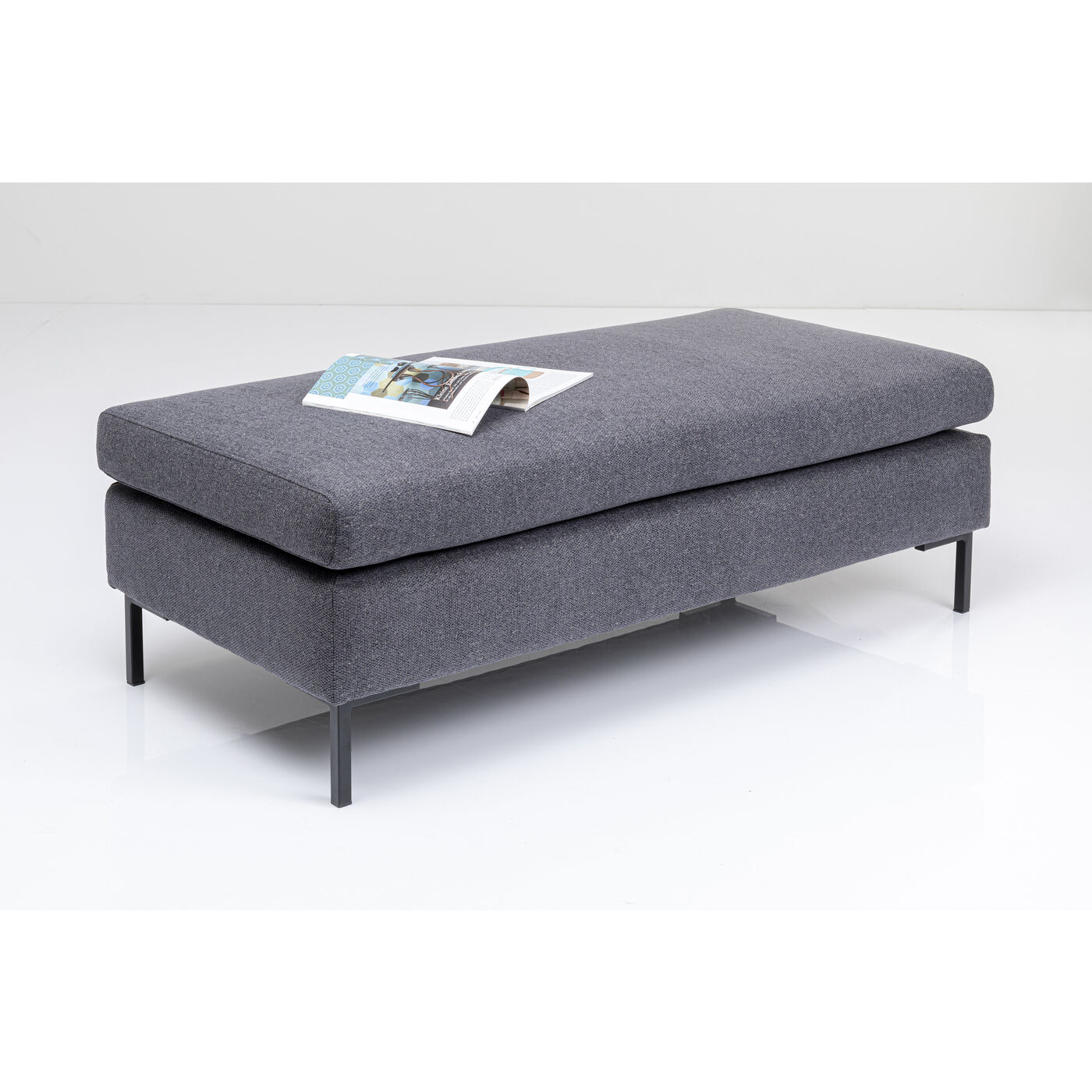 - Large upholstered stool in melange grey, 43 x 130 x 62 centimeters (H/W/D)