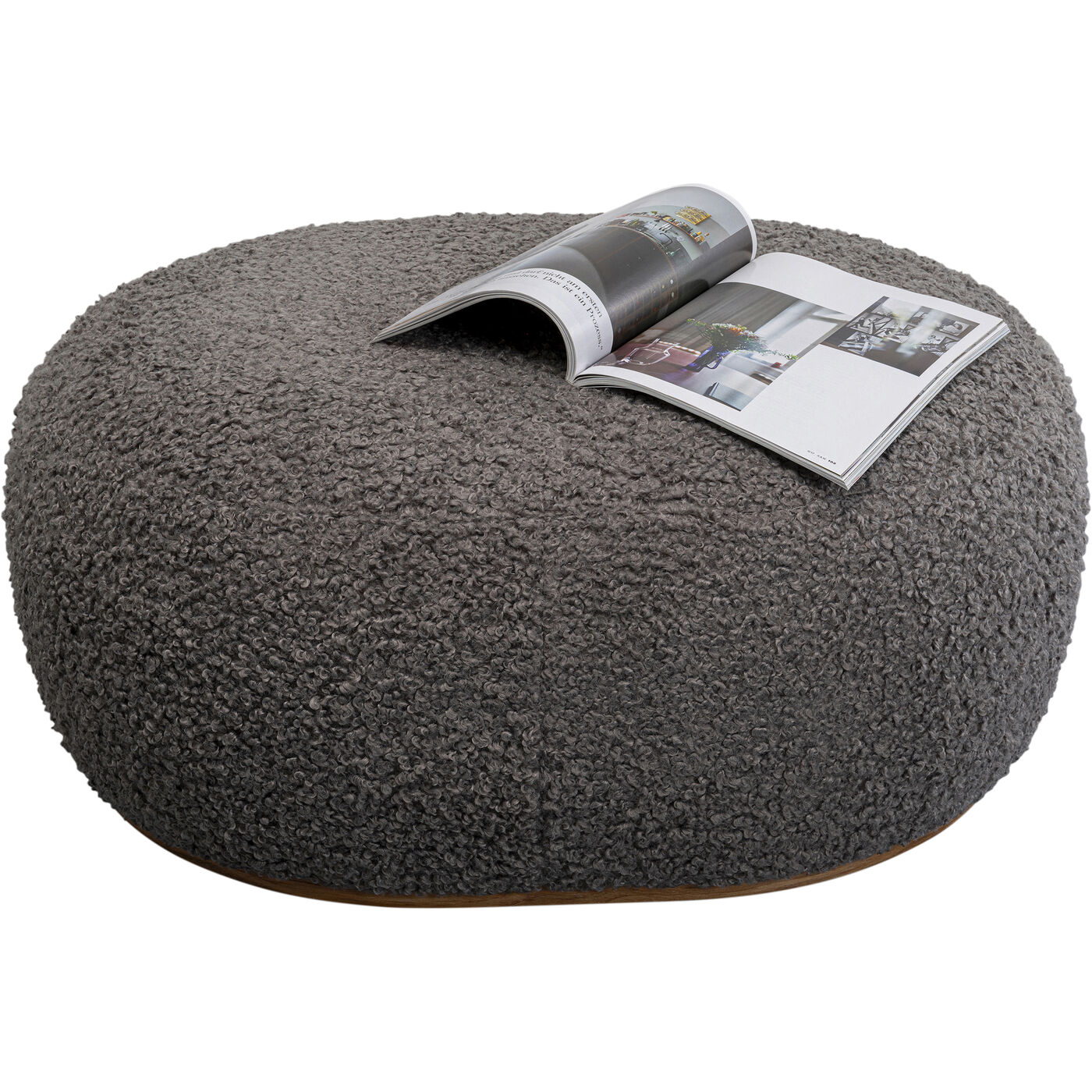 - Oval upholstered stool in grey with bouclé cover, 36 x 81 x 64.5 centimetres (H/W/D)