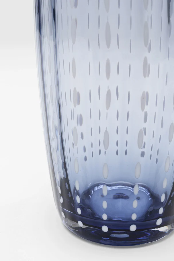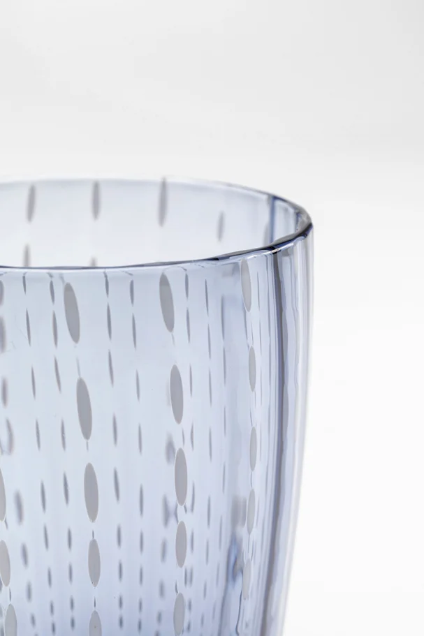 The glasses in the Clue series bring a breath of fresh air to any dining table with their clear, elegant shape and lively, riffled surface. The delicate blue, decorated with fine speckles in white, exudes Mediterranean flair and has a pleasantly light and stylish effect. The sophisticated texture catches the light in a fascinating way and ensures a lively play of colors with every sip. Ideal for summer cocktails or a relaxed dinner, the set can be perfectly combined with natural materials such as linen, wood or ceramics to create charming accents in any setting.