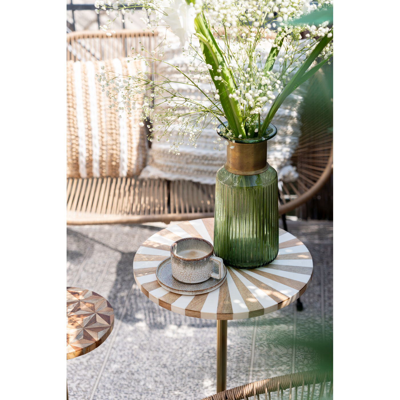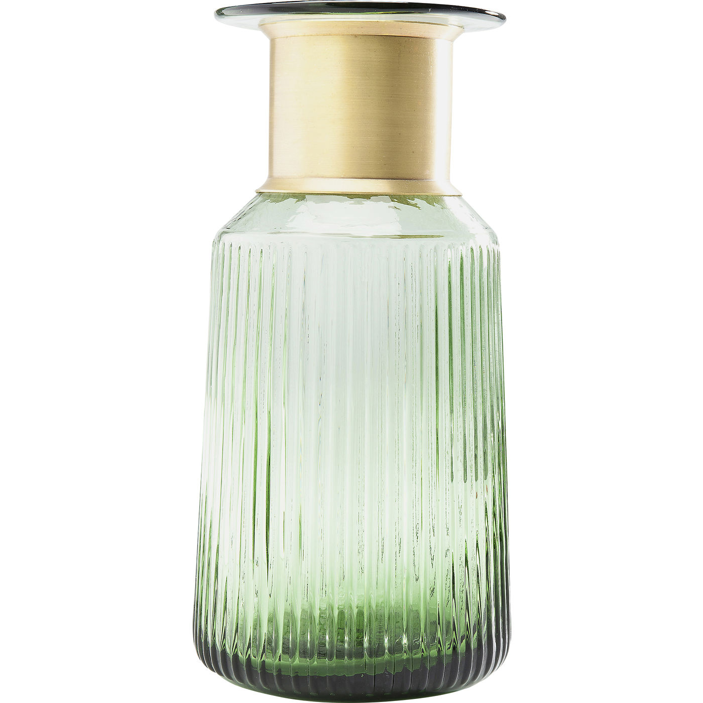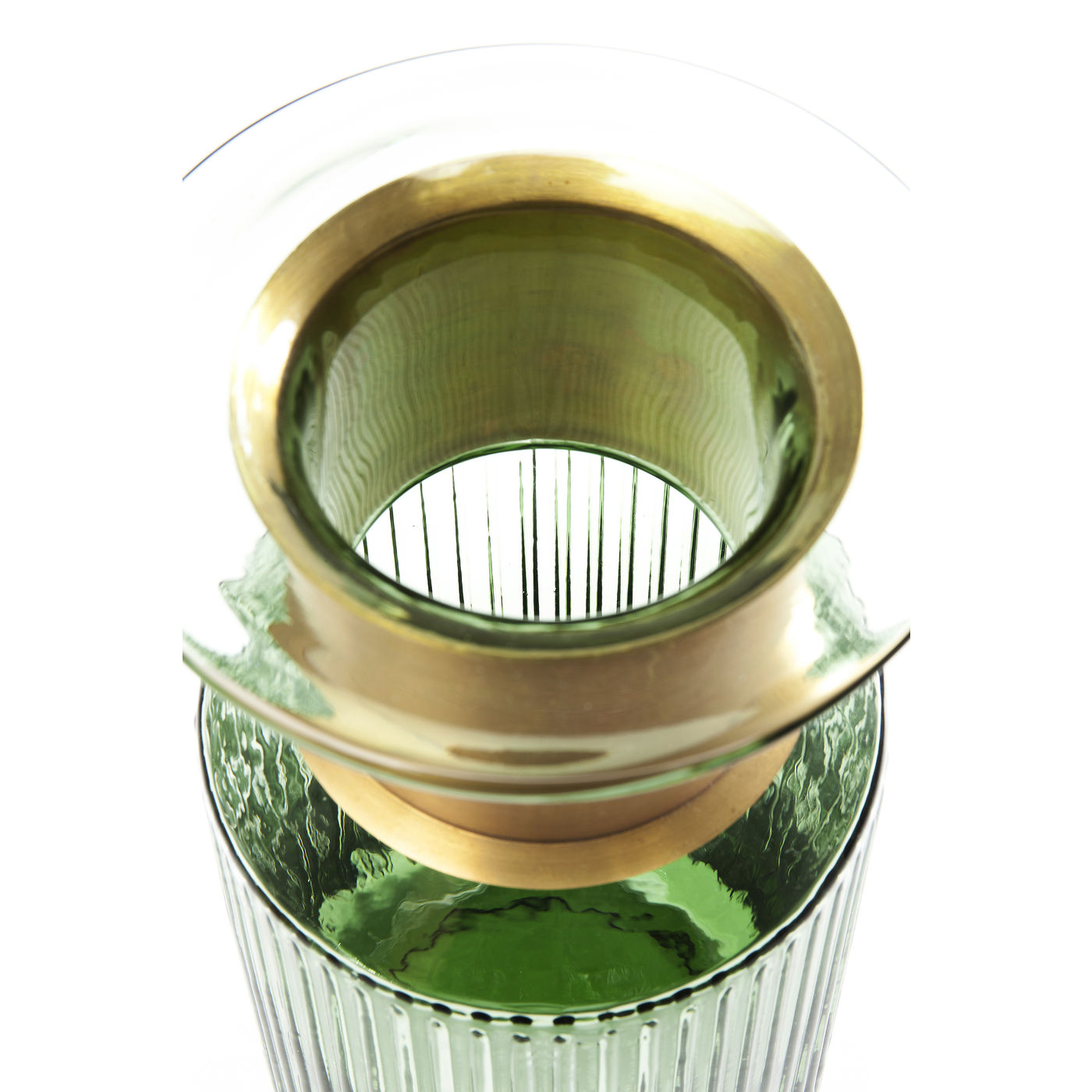 Vase in green: a vase series with that certain something The Barfly series plays with gentle pastel colours, versatile shapes and solid glass with different designs. The coloured glass and the unusual shapes of the vases are reminiscent of artistic glass from Murano, while the neck of the vase is decorated by a gleaming ring of brass. Ideal for romantic decorations, a great match for the retro style, and forms a spectacular contrast on a modern sideboard. Choose your favourite colour and shape from our highly diverse range!