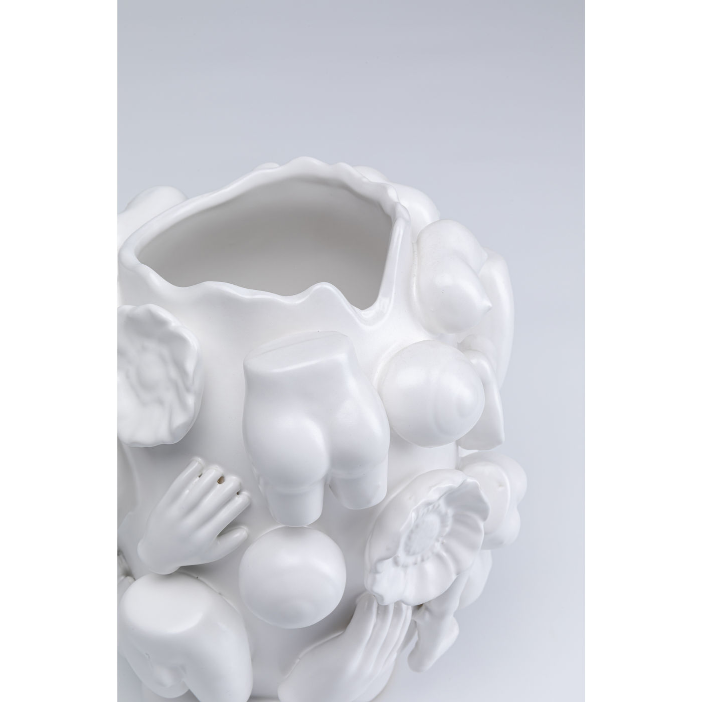 - A white, round vase with sensuously surreal décor - a masterpiece of ceramic work for the daring