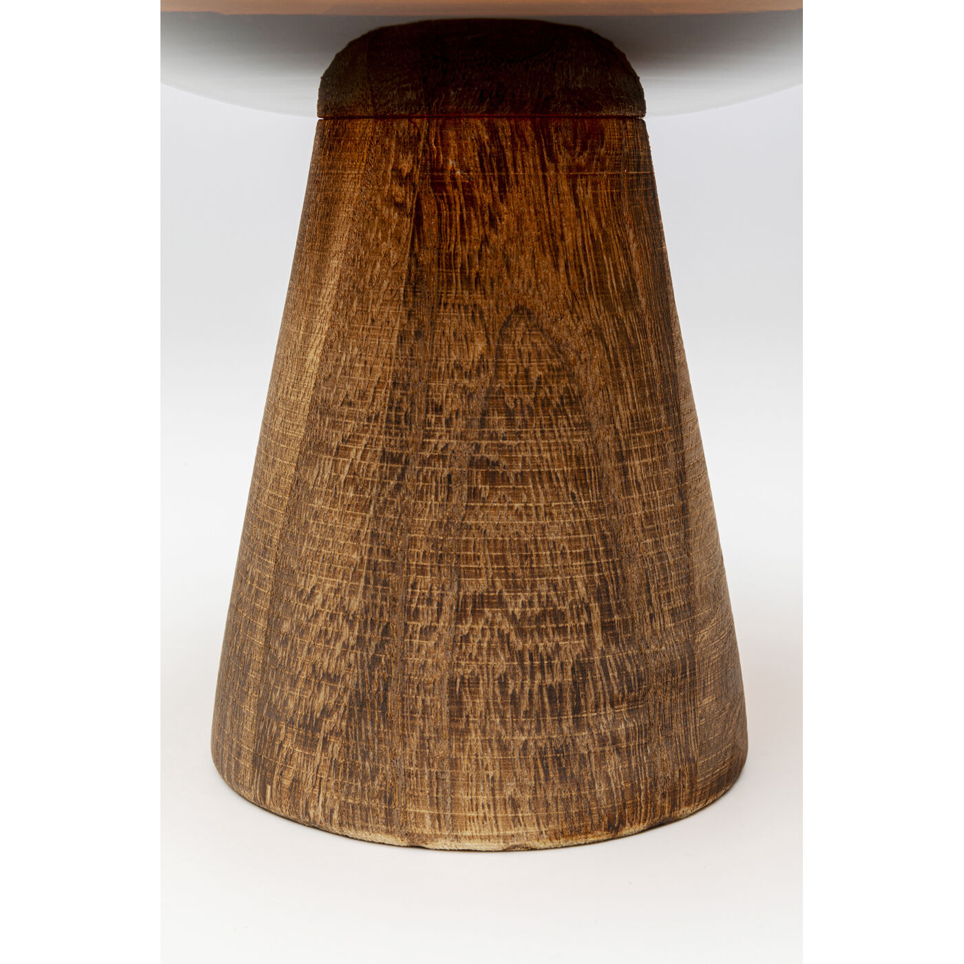 A stylish interplay of organic silhouette and natural materiality - this glass vase brings modern elegance into play with its sculptural shape and warm amber hue. The high-contrast base made of dark solid wood gives it stability and an earthy depth that harmonizes particularly well with nature-inspired furnishing styles. As a solo artist on sideboards or in combination with dried flowers on the dining table, it creates a harmonious overall look. It also unfolds its decorative character in an ensemble with other vases of different heights and makes a calm yet expressive statement in the room.