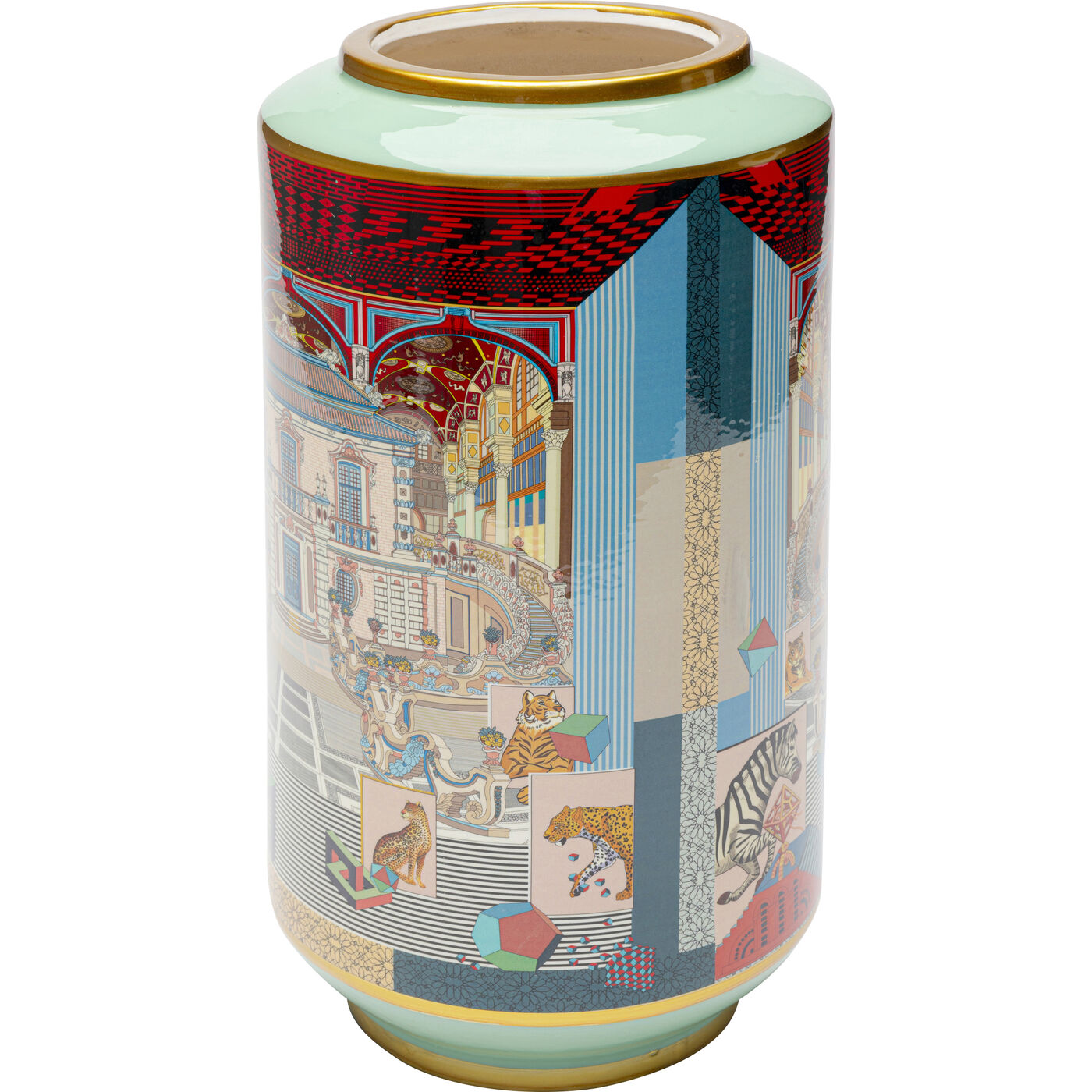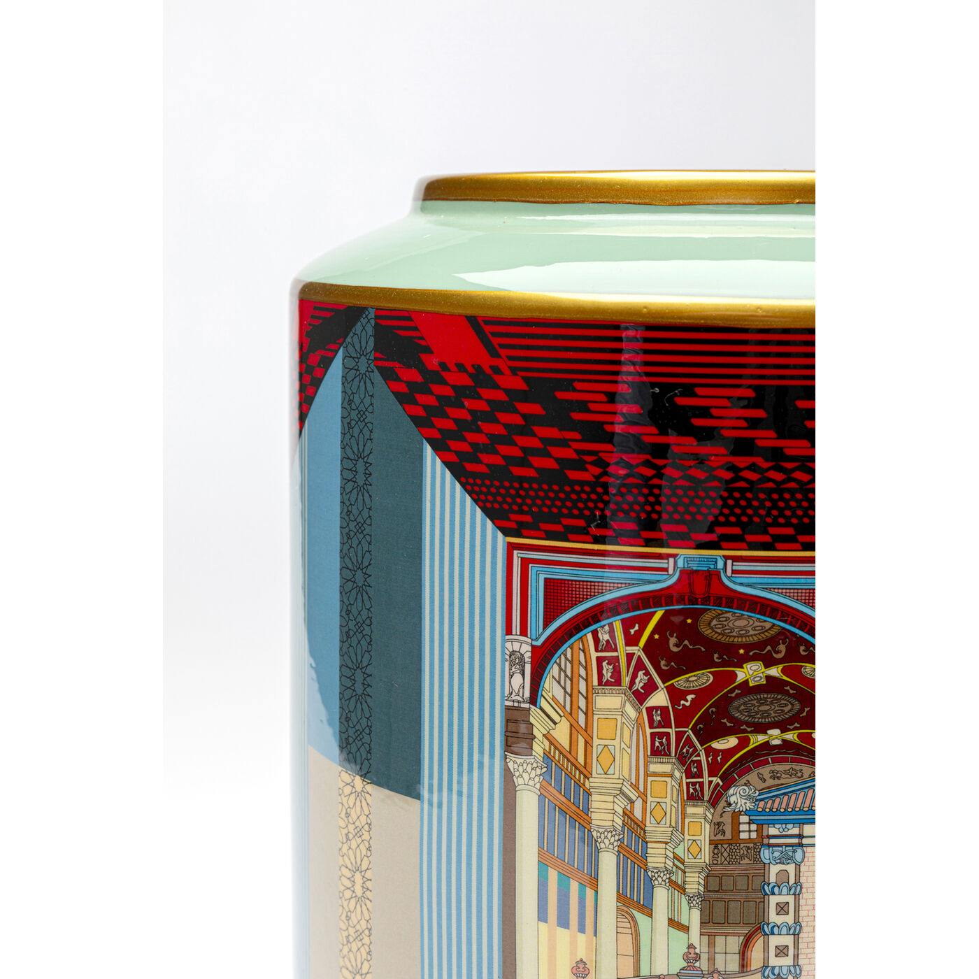- Colourful vase with palace motif and golden details, 34 x 19 x 19 centimetres (H/W/D)