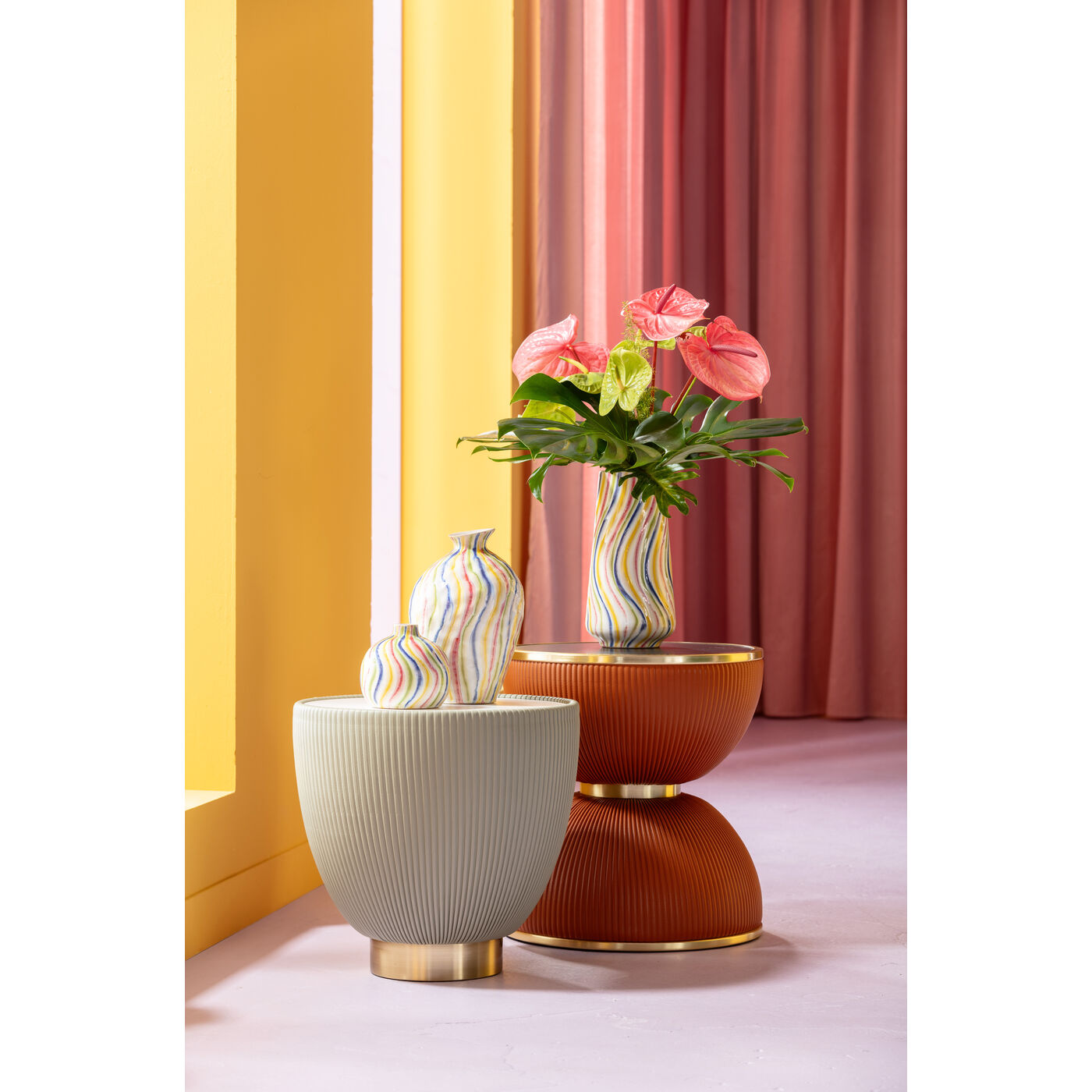 This colorful vase is a true masterpiece of Venetian elegance. Its organic shape and artfully curved silhouette add a luxurious touch to any room. The elegant design is underlined by the harmonious color scheme in bright tones, which can be effortlessly integrated into various living styles. Whether as a solitaire on a sideboard, as an eye-catcher on the dining table or in combination with other decorative objects - this vase sets stylish accents and brings an atmosphere of glamorous sophistication to any home.