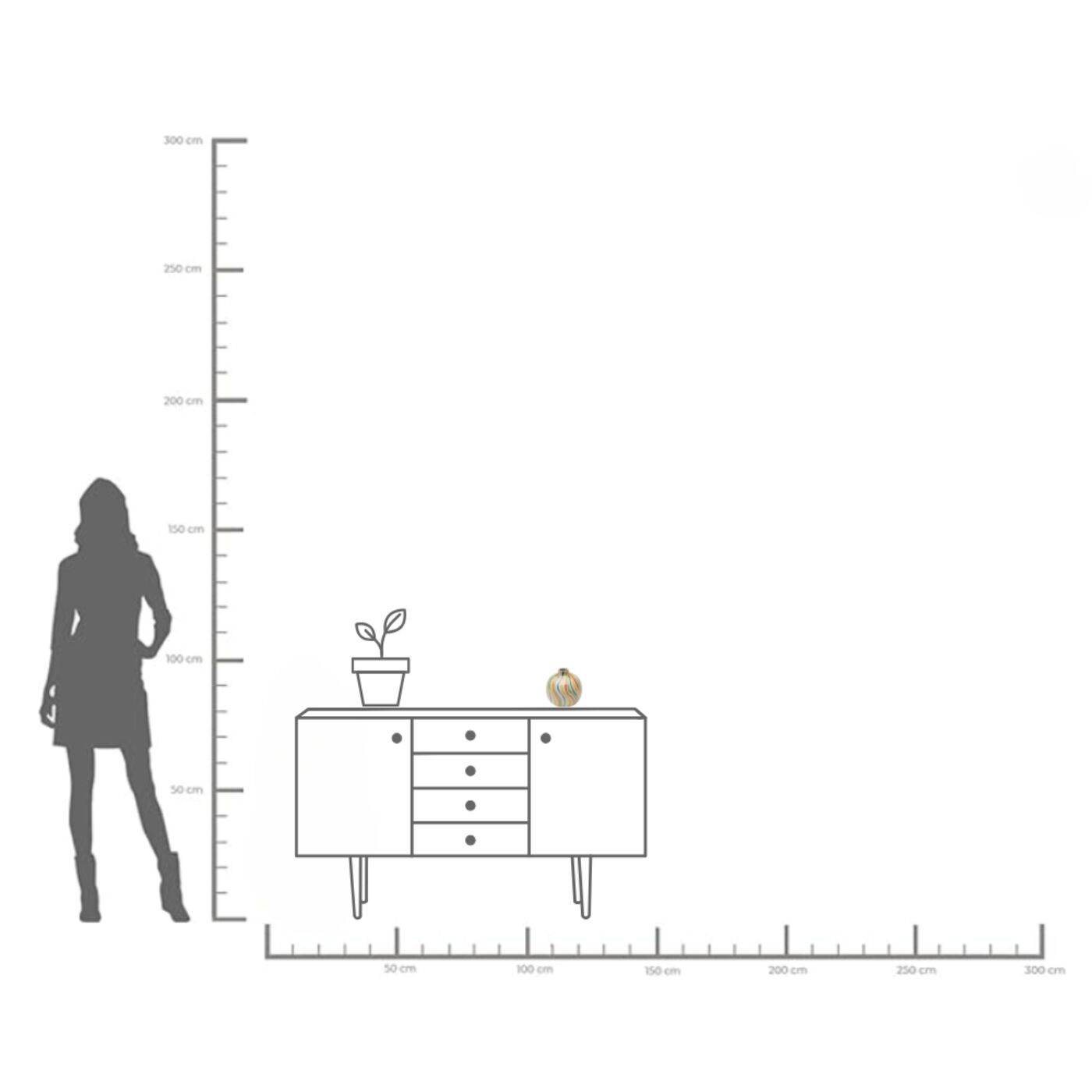 - Small ceramic vase in bright colors, 34 x 14.5 x 14.5 centimeters (H/W/D)