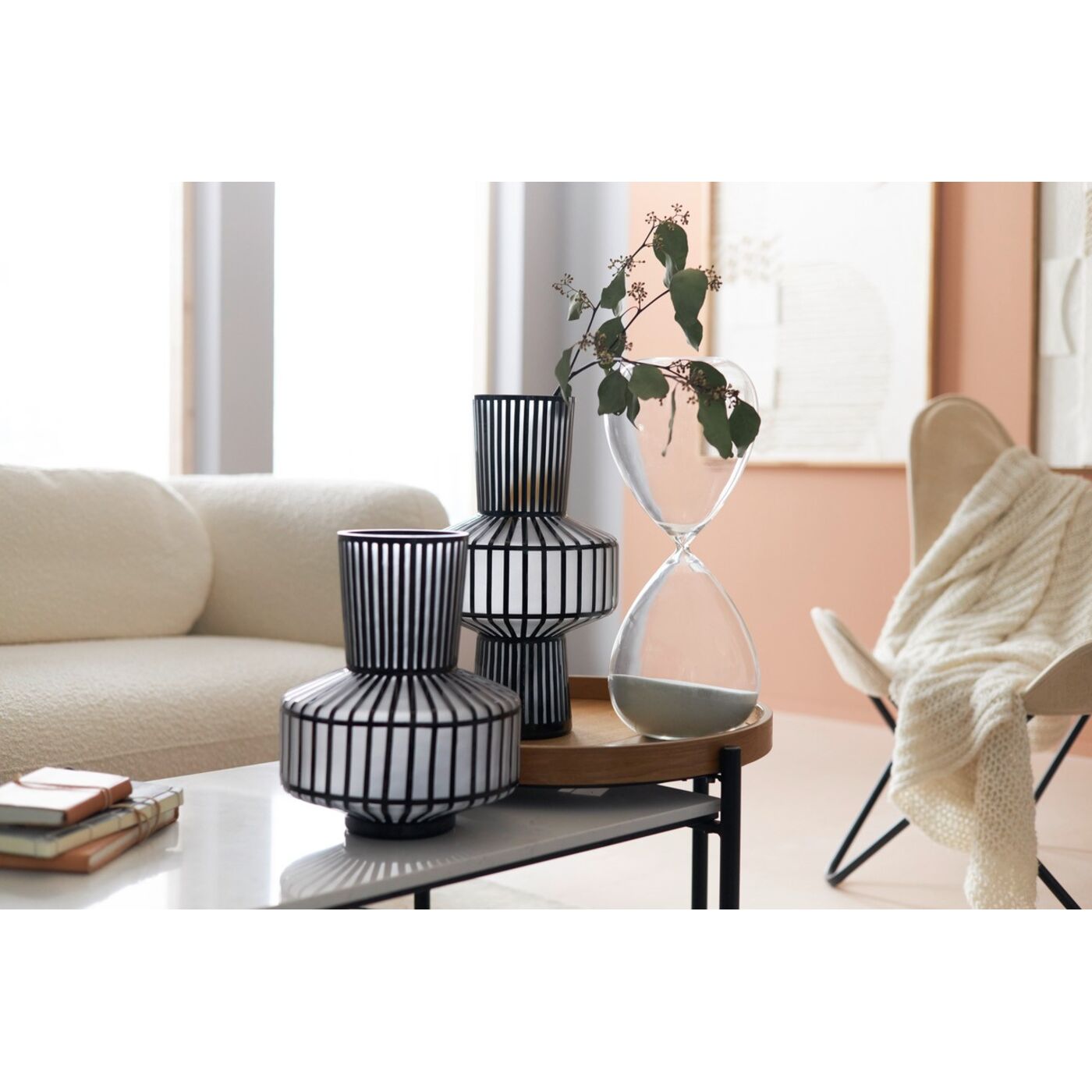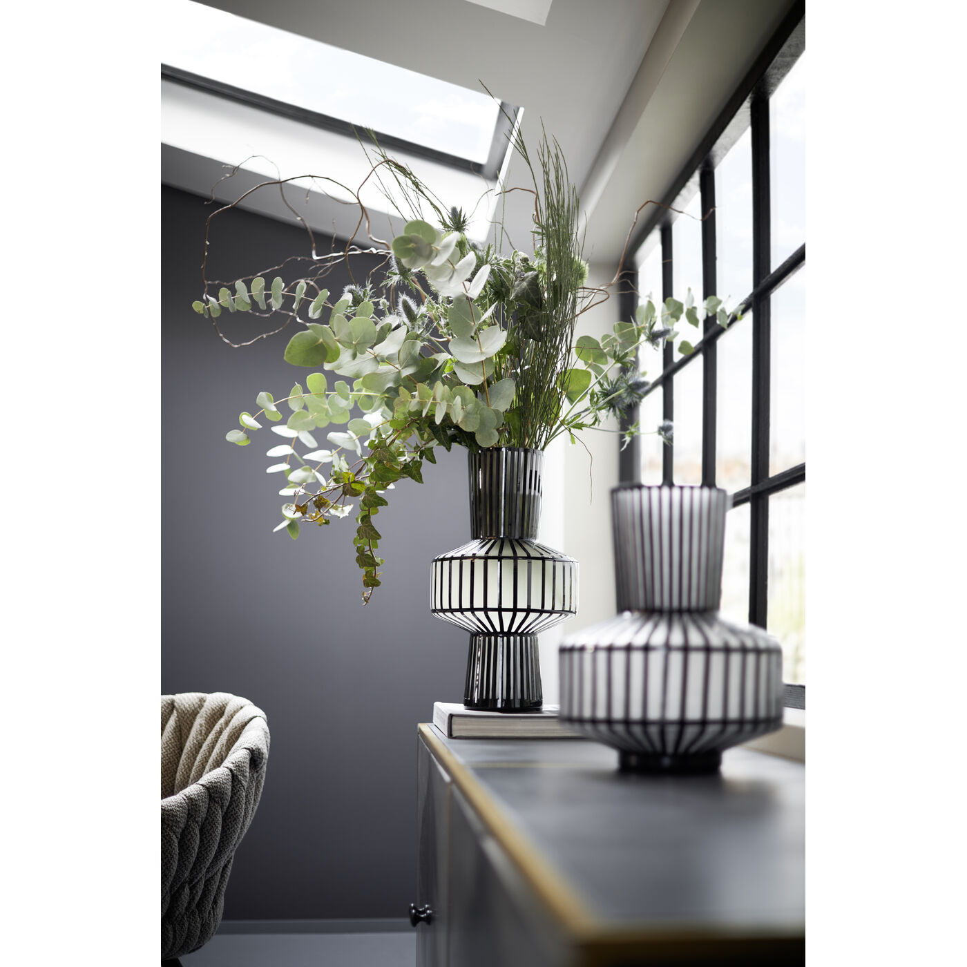- Exquisite flower vase made of satinised glass in light grey with shiny black stripes