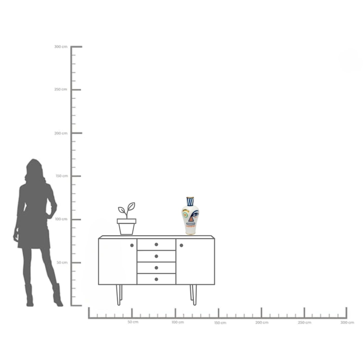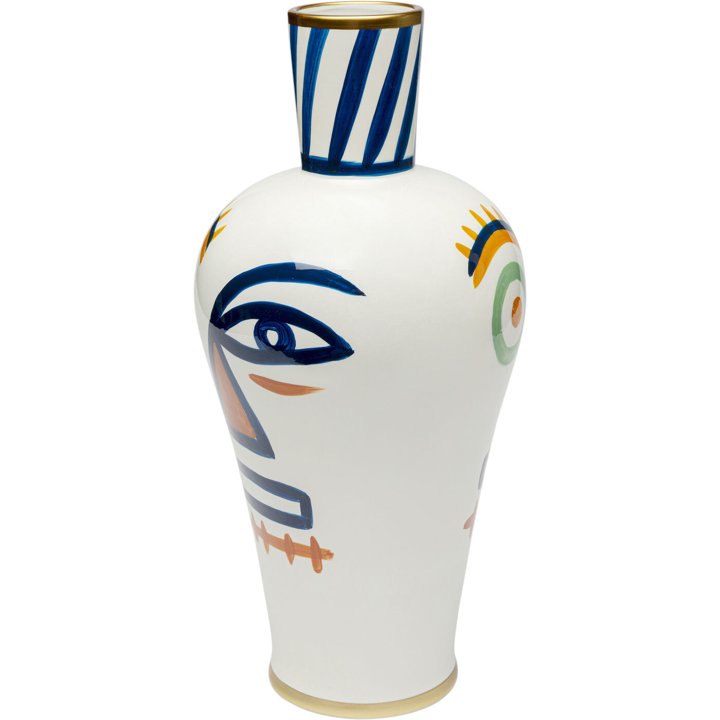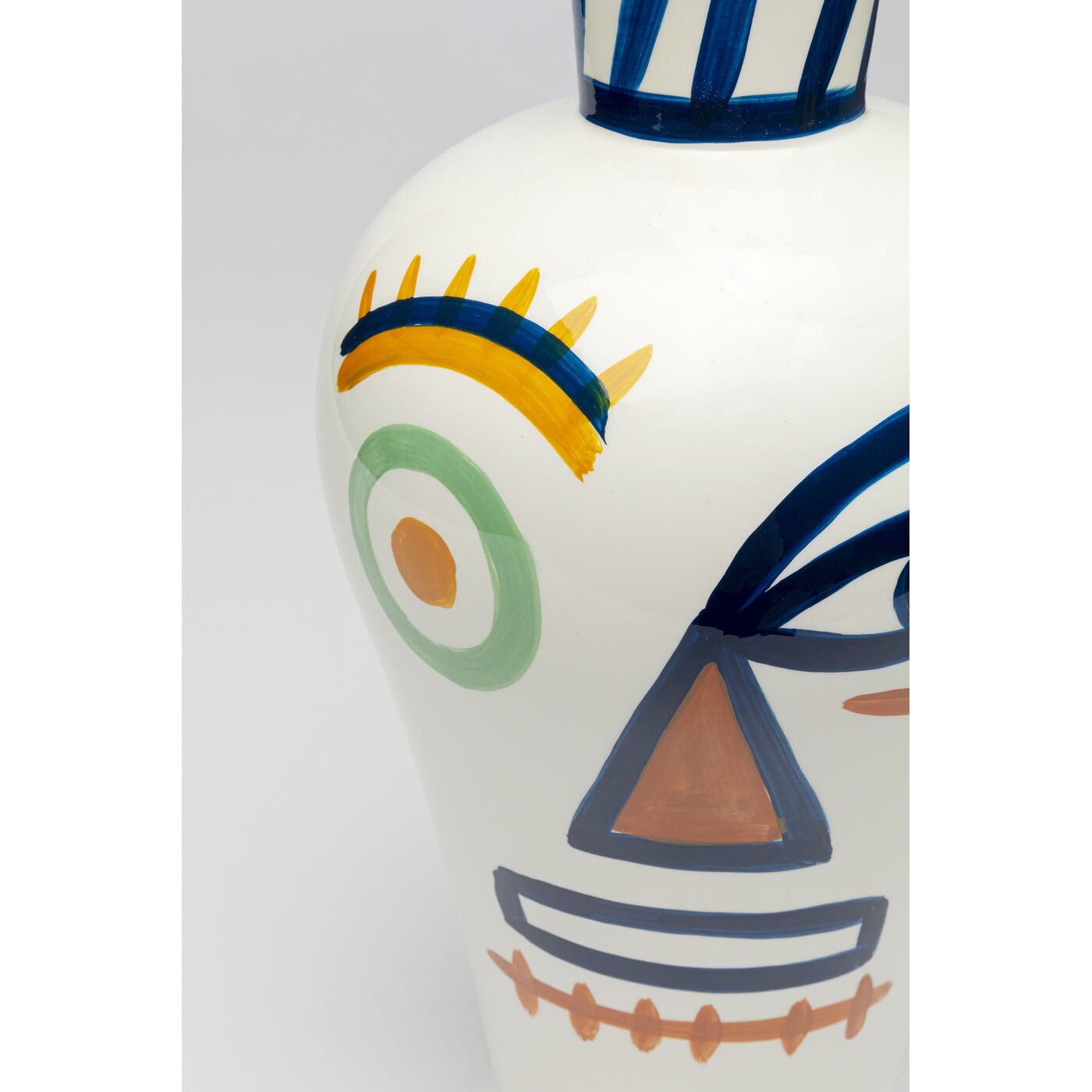 - With its abstract face motif in rich colors, the vase sets artistic accents