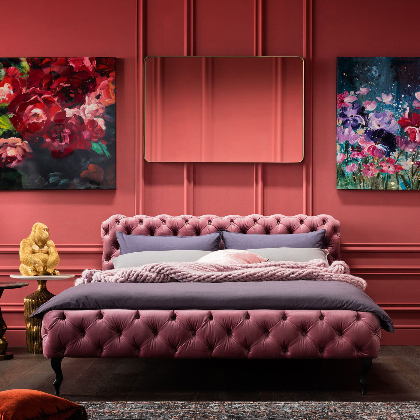 Without moving any walls: unobtrusively and stylishly the Curve mirror expands small rooms - or makes large rooms even larger. Fine details such as the rounded corners and the extremely narrow, brass-coloured frame give it an almost elegant appearance.