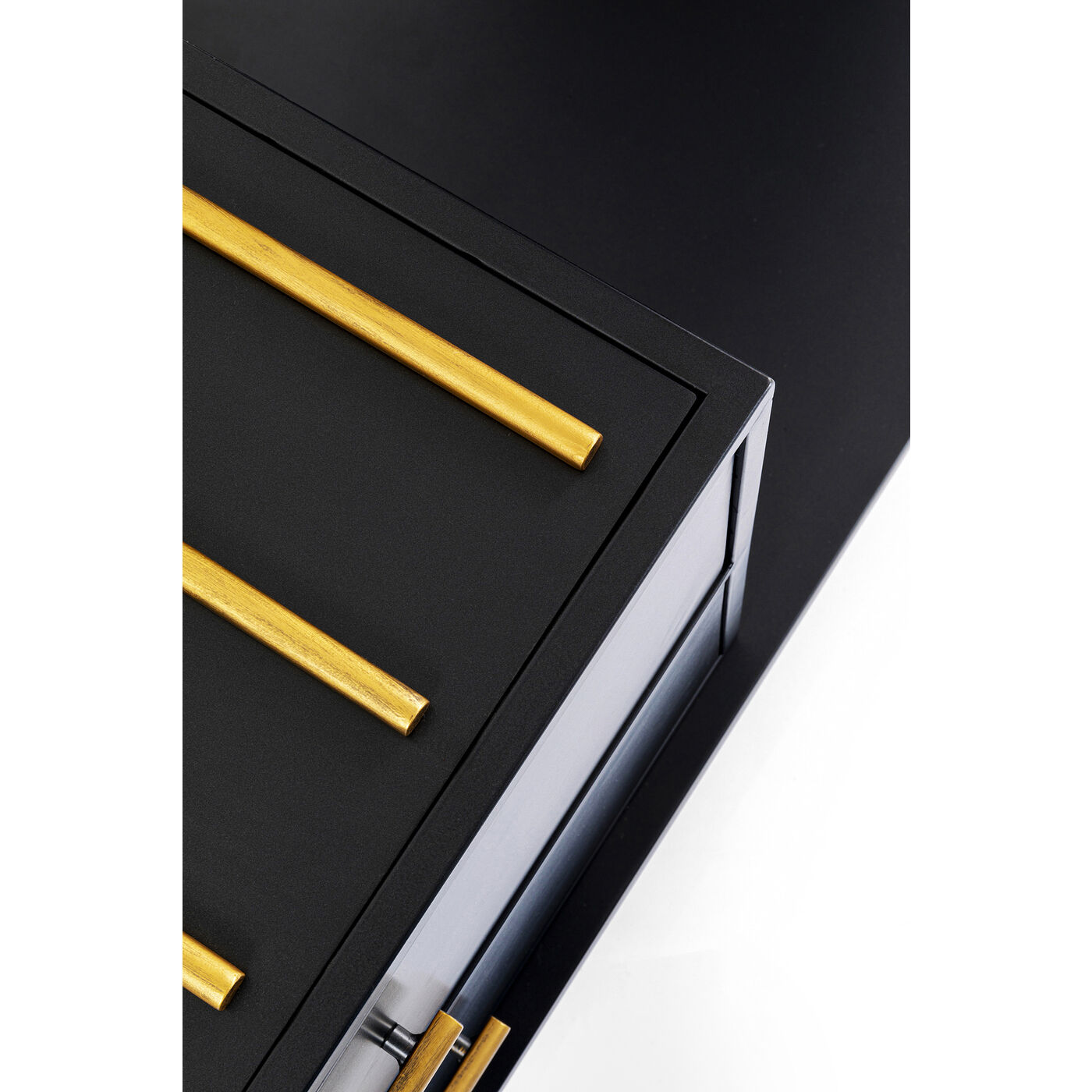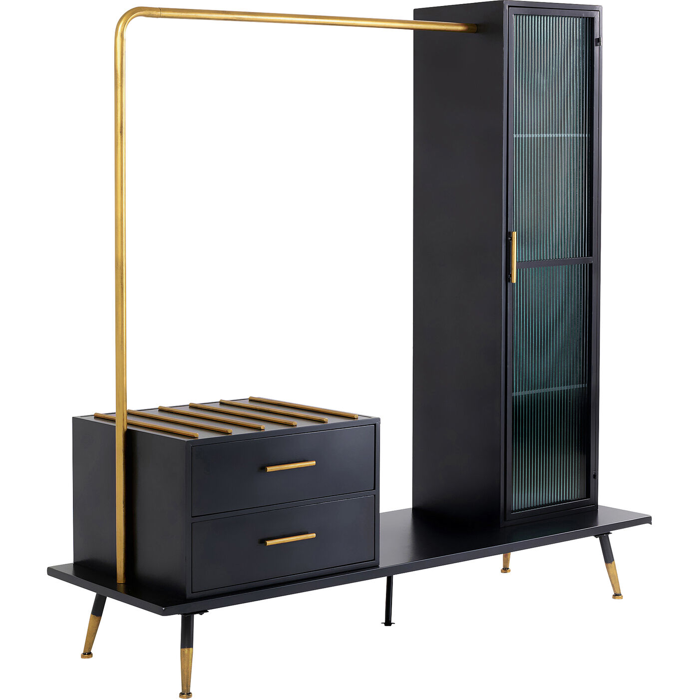 How do functionality and class go together? The answer is: outstandingly well! The La Gomera wardrobe in elegant black and gold is a treat for the eyes. What you can t see are the accessories that disappear inside the drawers, but everything you would like to show off will find space on the clothes rail or be displayed discreetly behind the fluted glass door. This wardrobe will give your hallway the kind of loft atmosphere that will convince your guests of your excellent taste as soon as they enter your home.
