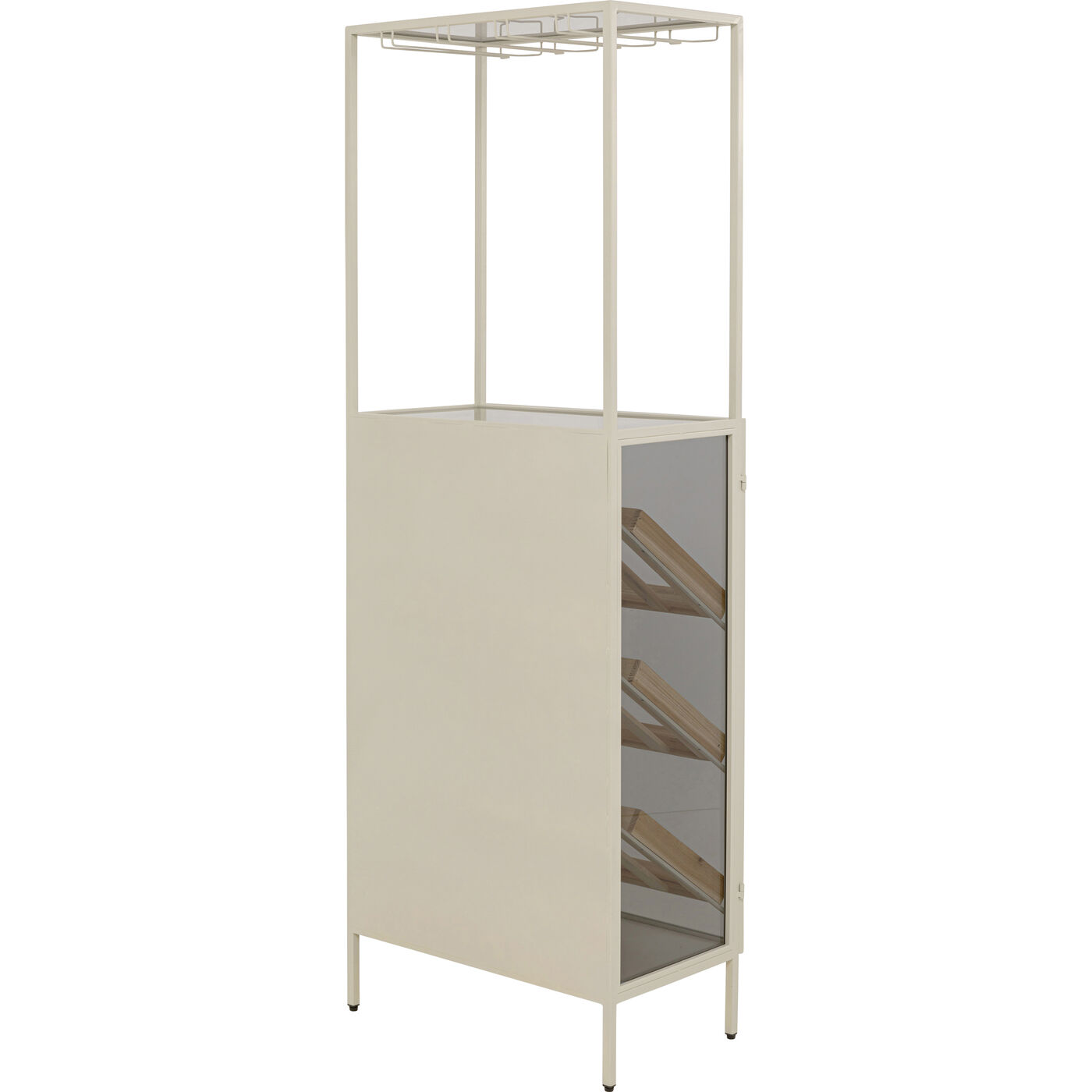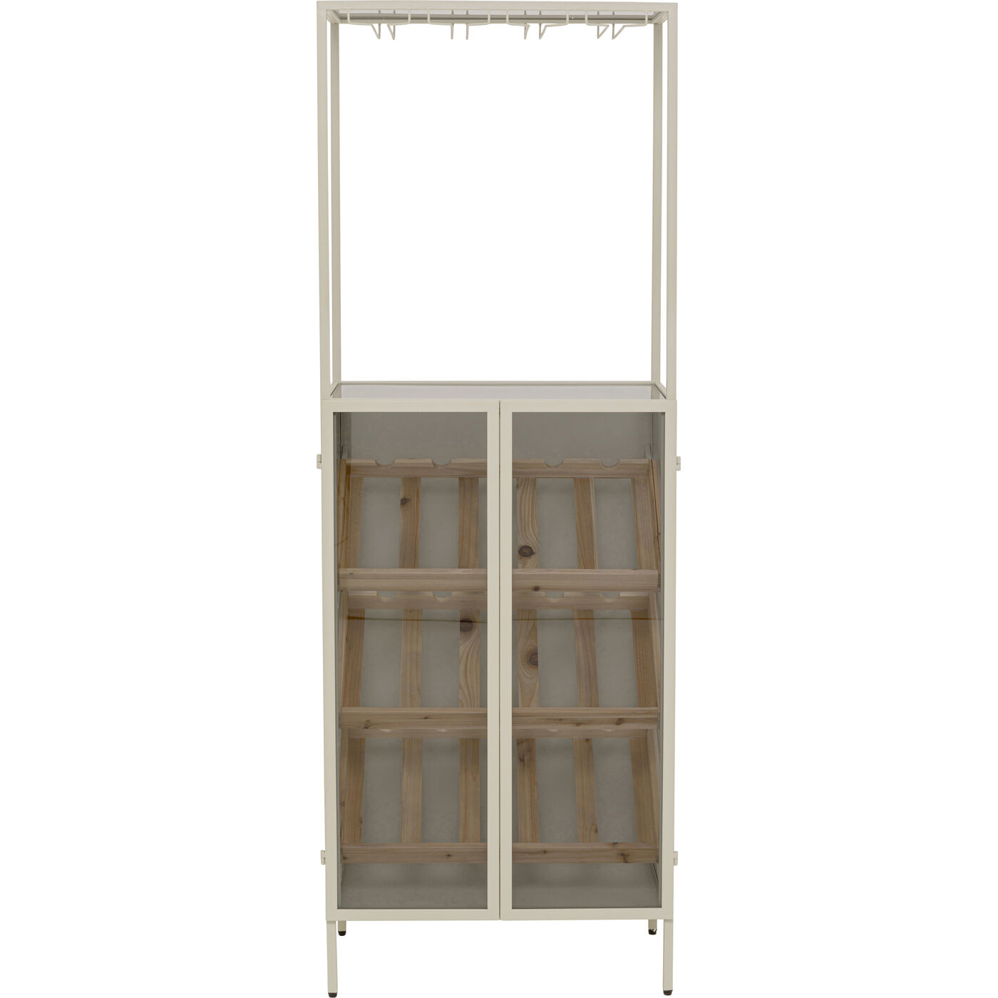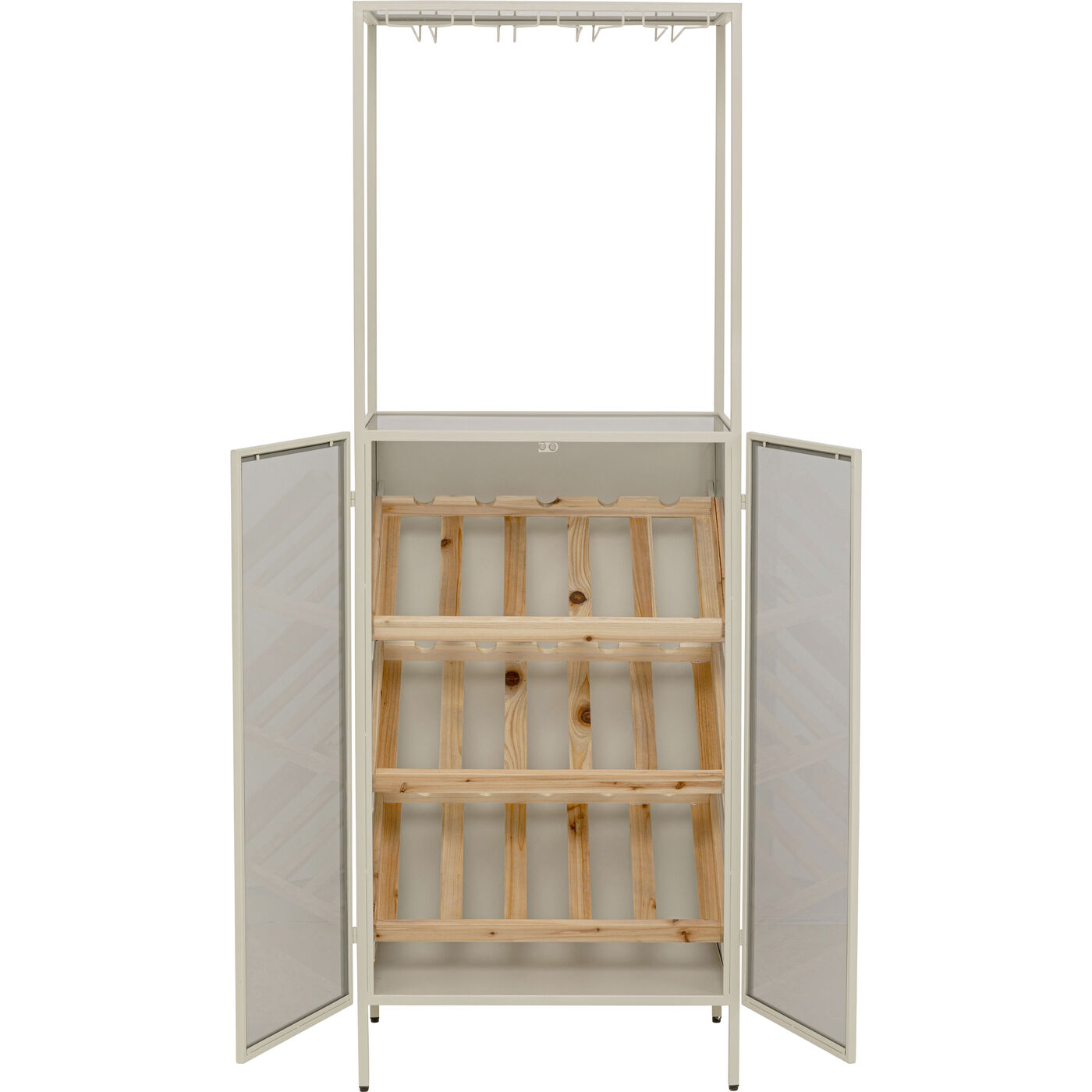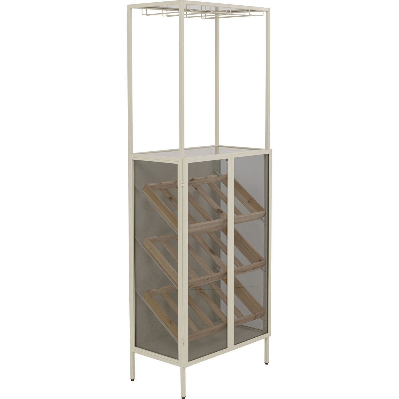 An elegant wine rack that combines functionality with urban style - perfect for discerning connoisseurs. The filigree steel frame in greige lends the design a modern lightness, while the lightly tinted glass doors present fine wines in style. The sophisticated design offers space for up to 24 bottles and blends harmoniously into minimalist or Scandinavian living concepts. Thanks to the practical push-to-open function, the doors open smoothly without any handles. Whether as a stylish home bar or a sophisticated eye-catcher in the living area - this piece of furniture combines design and function to perfection.Shelf: Permanently mounted 40 kg Max. load-carrying capacity Assembled Push-to-openCorpus: Steel powder-coated, Foot/Base: Steel powder-coated, Shelf: Steel powder-coated, Door: Glass Toughened safety glass Clear, Steel powder-coated, Shelf: Permanently mounted, 40 kg Max. load-carrying capacity, Assembled, Push-to-open