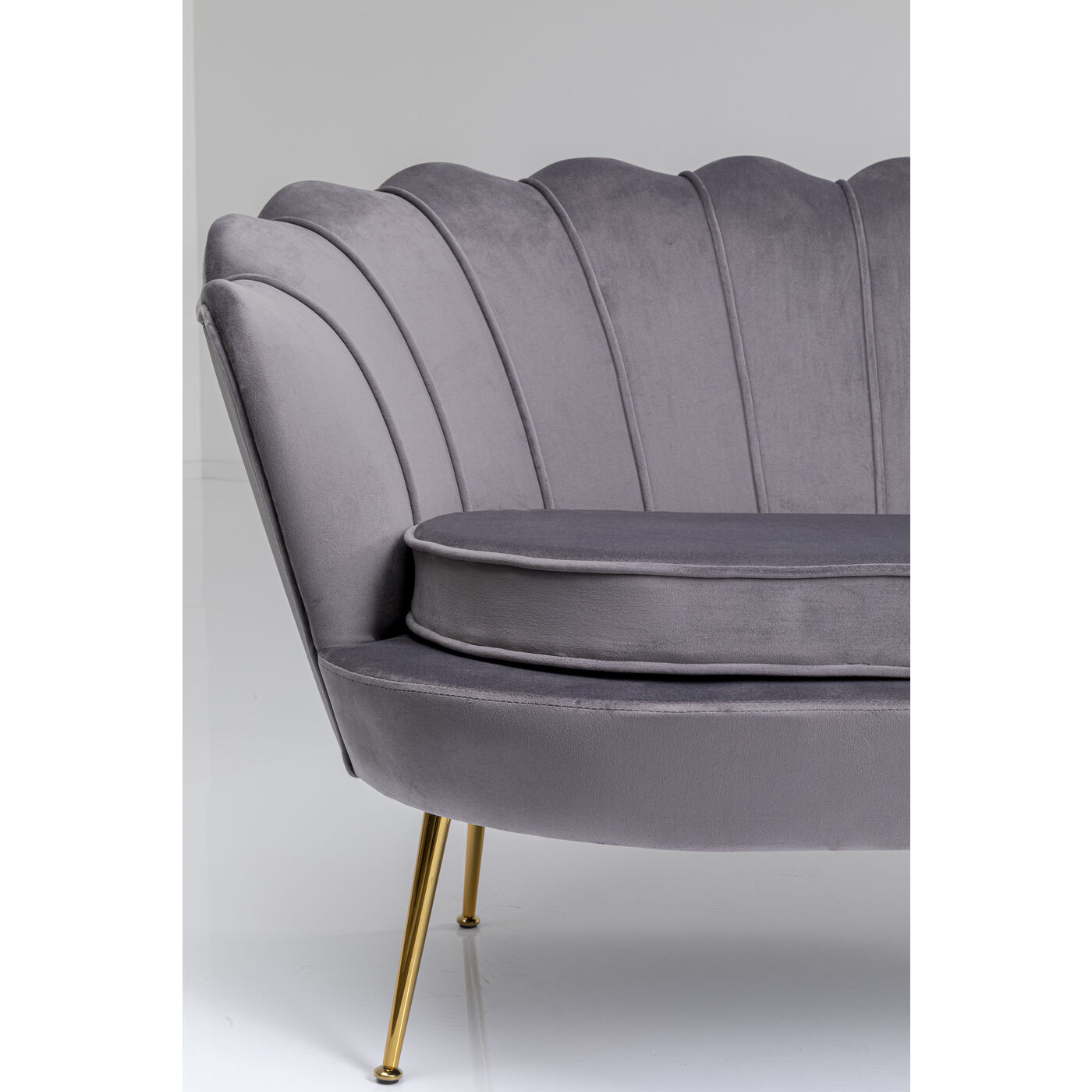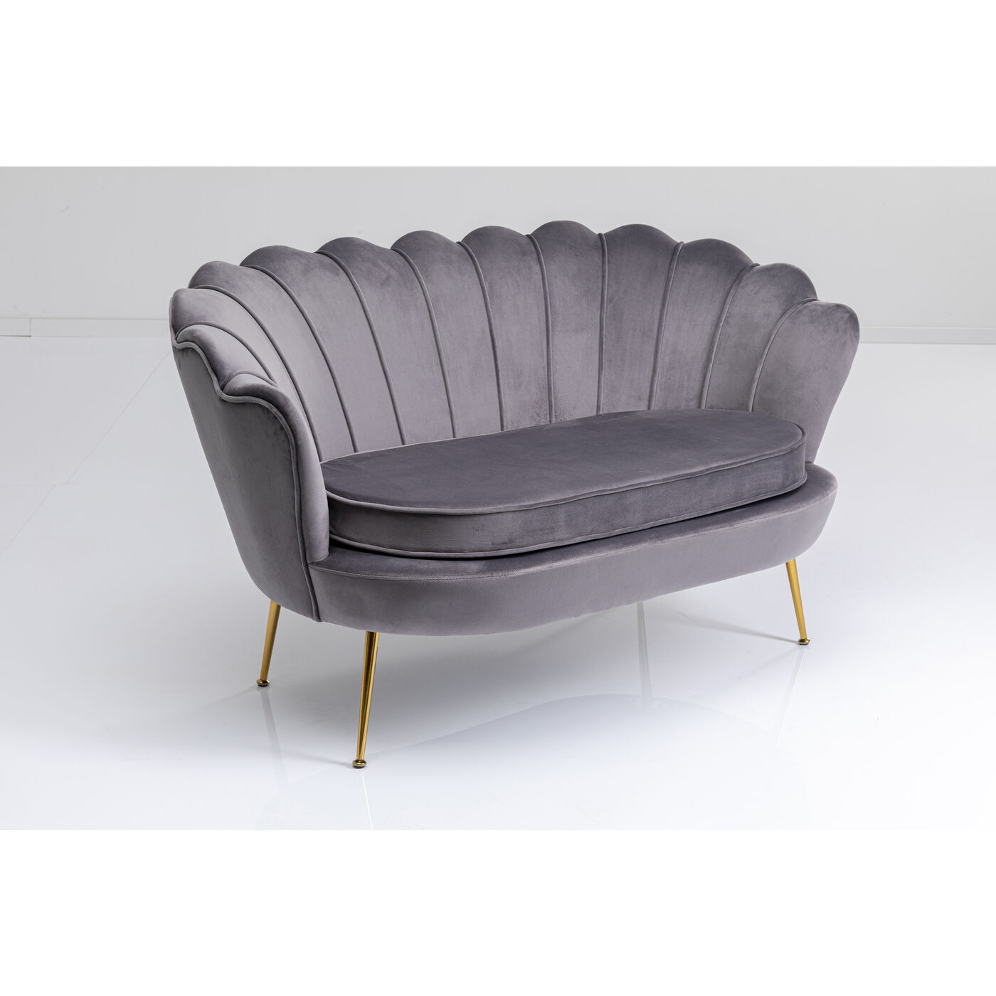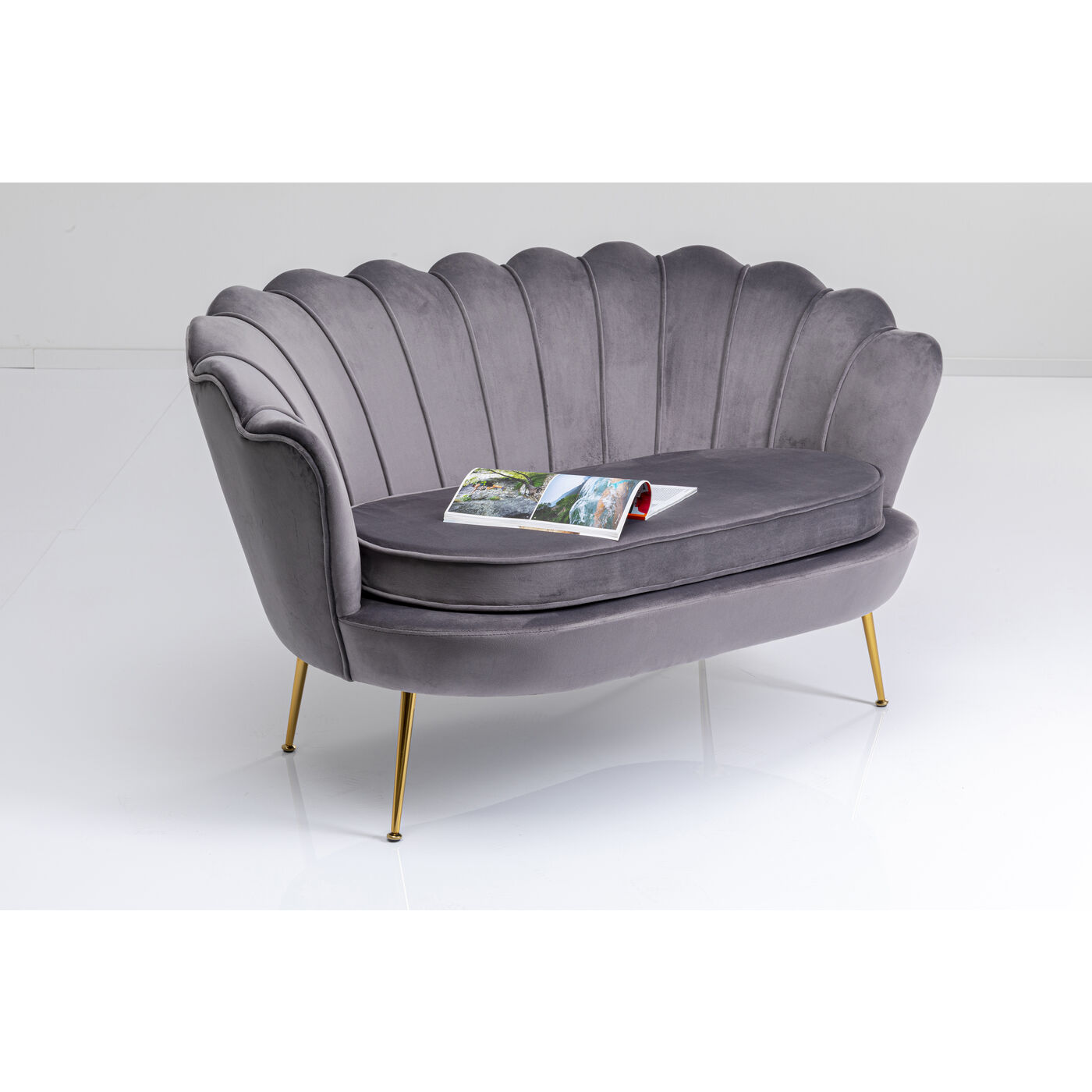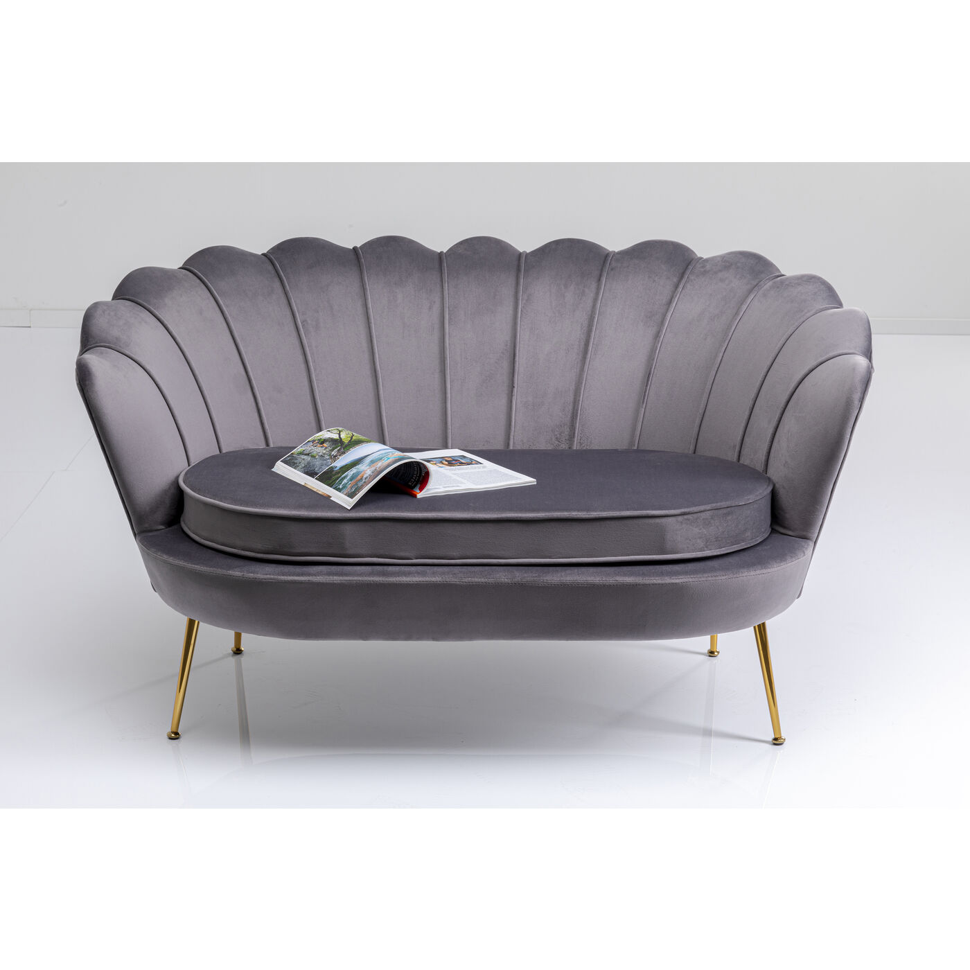 Perfect in combination with a matching cocktail armchair - especially if there is no room for a large corner couch. With this small velvet sofa, you can transform your living room into a stylish salon in no time. The shimmering dark grey two-seater in flower shape not only looks dazzling, it is also particularly cosy thanks to the full-length arm and backrest and the loose seat cushion.