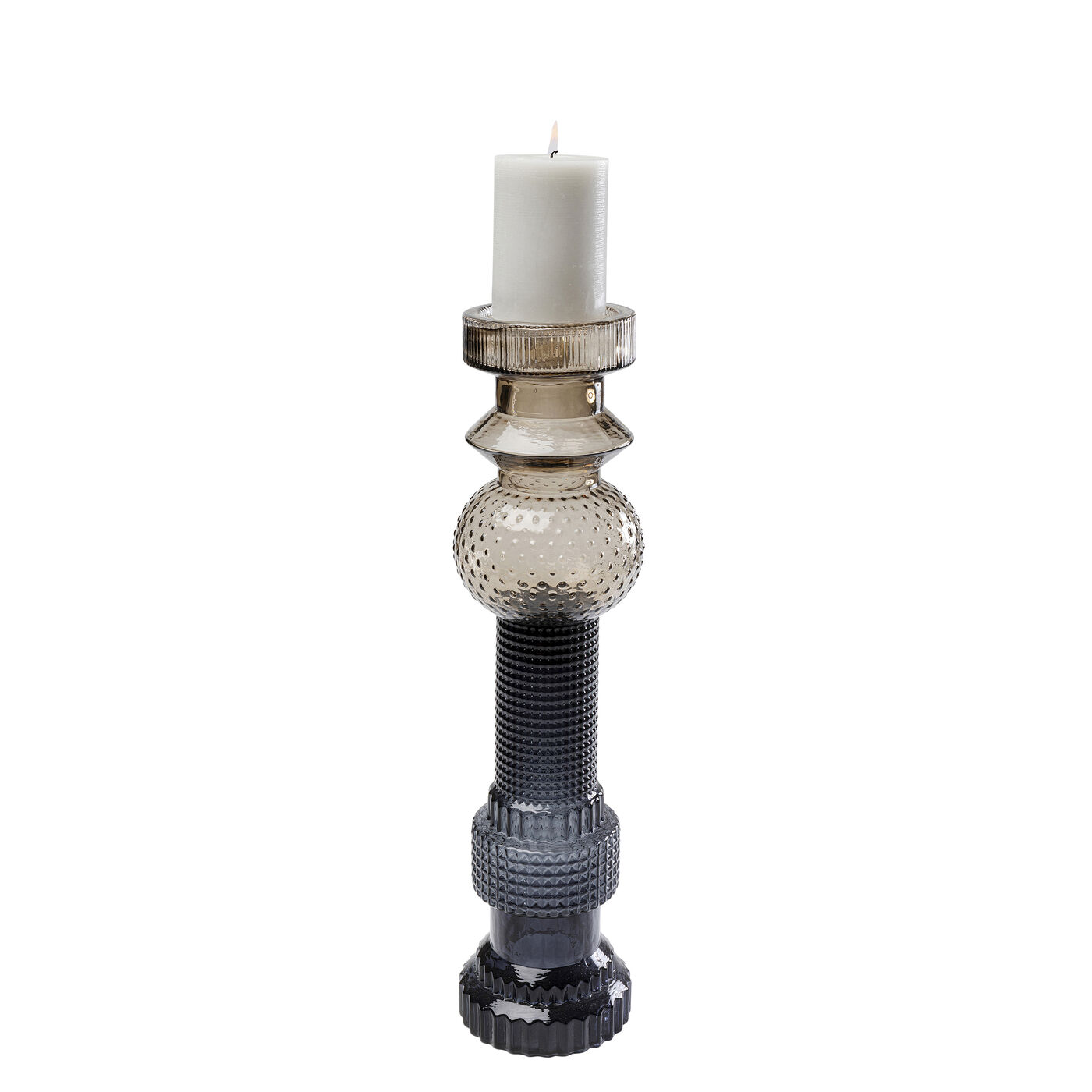 - Grand bougeoir en verre teinté gris et marron, 49 x 12 x 12 centimètres (h/l/p)
