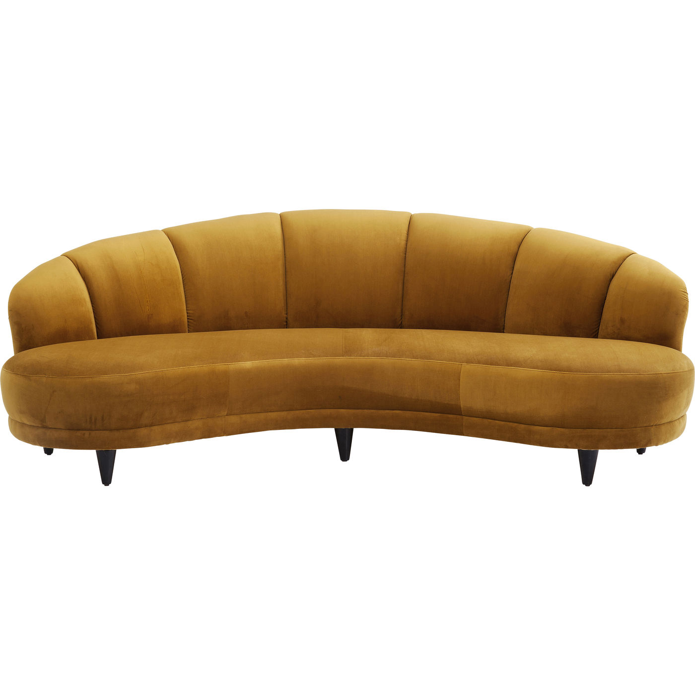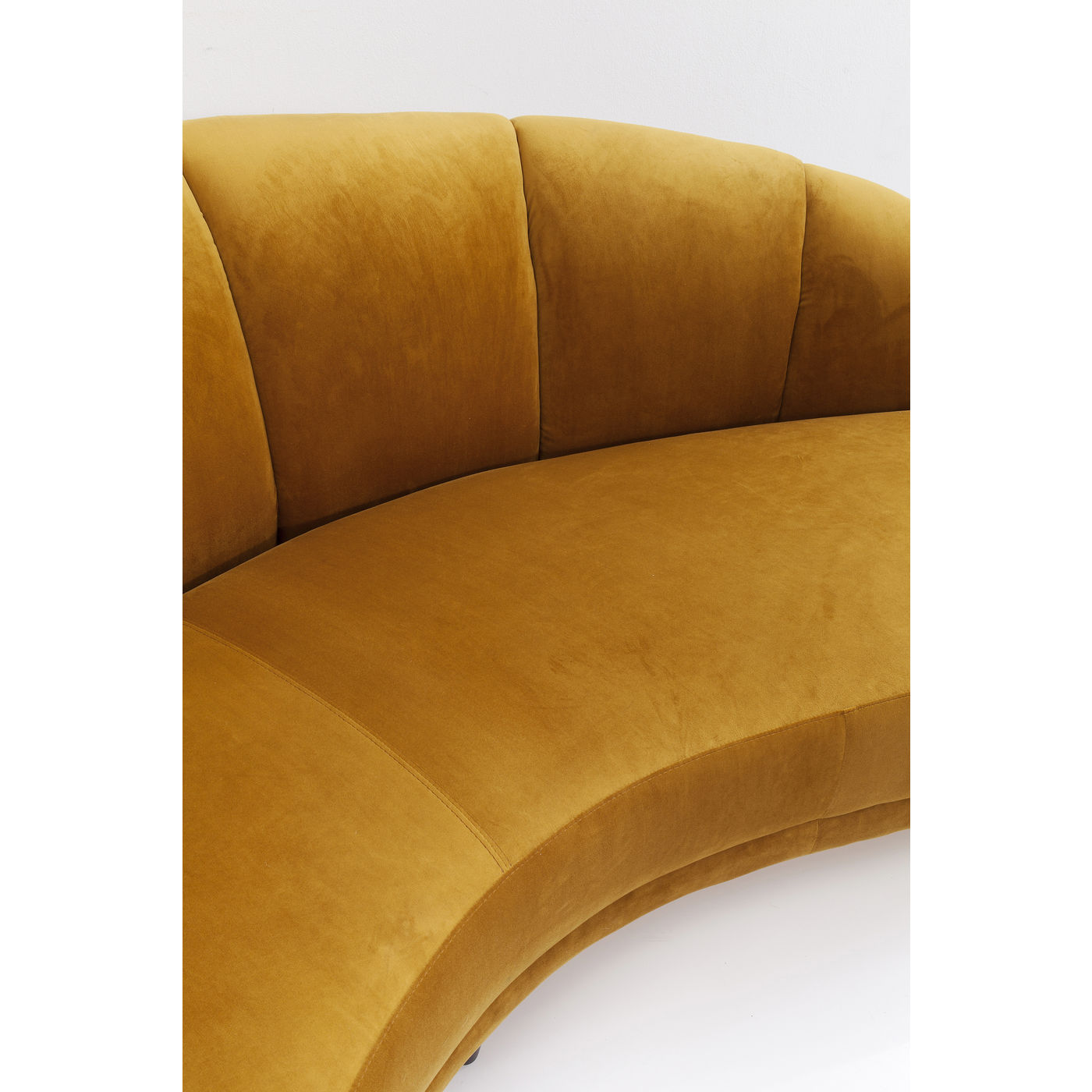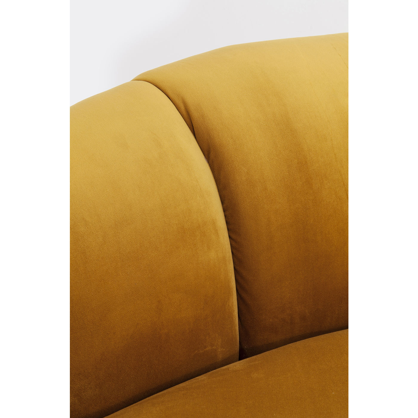 Un canapé ? Non, un trésor ! La forme joliment incurvée, le dossier semi-circulaire, la sellerie câline et la sellerie veloutée rendent cette trois places incroyablement attrayante. Une pièce exquise comme dans le salon d’un hôtel étoilé moderne.