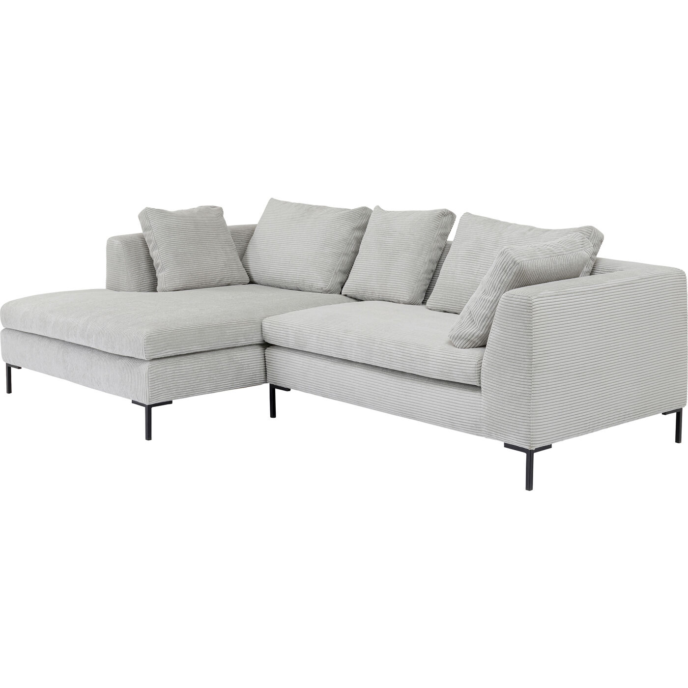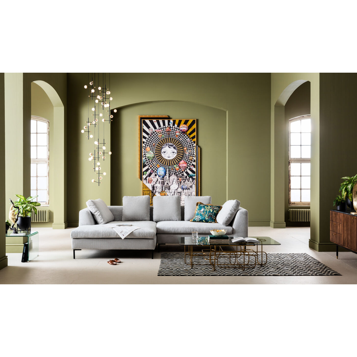 Gianni est une série de canapés d’angle de différentes tailles et couleurs, en option avec pouf à droite ou à gauche. Le canapé avec pouf gauche est particulièrement facile à combiner grâce au ton gris subtil et aux pieds simples en acier noir. Qu’il s’agisse d’un mobilier moderne, classique ou naturel - avec ce canapé, toutes les possibilités s’offrent à vous sur le plan stylistique. Le canapé rembourré devient un accroche-regard spécial si vous le placez librement dans la pièce d’un grand salon. Pas de problème grâce au rembourrage complet !
