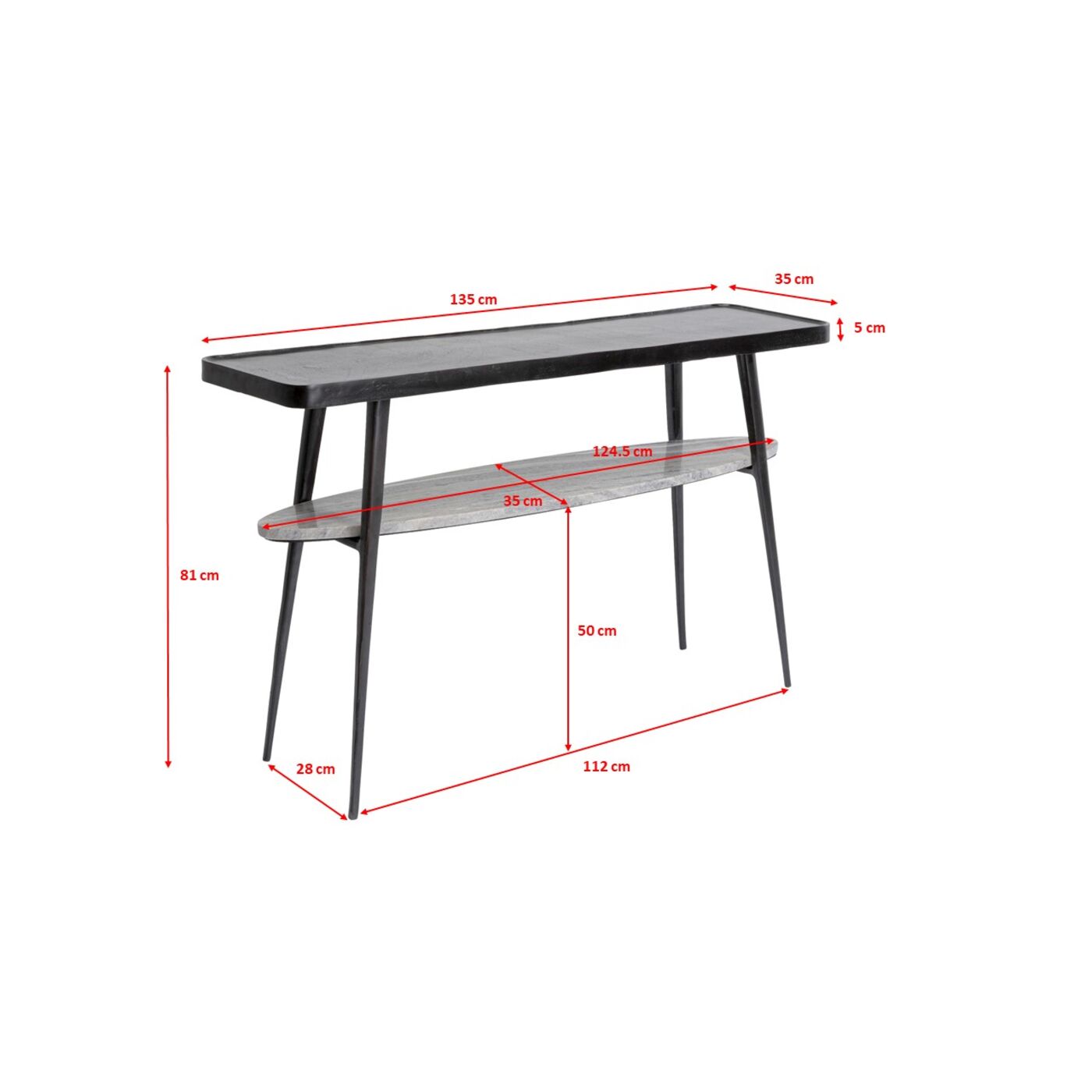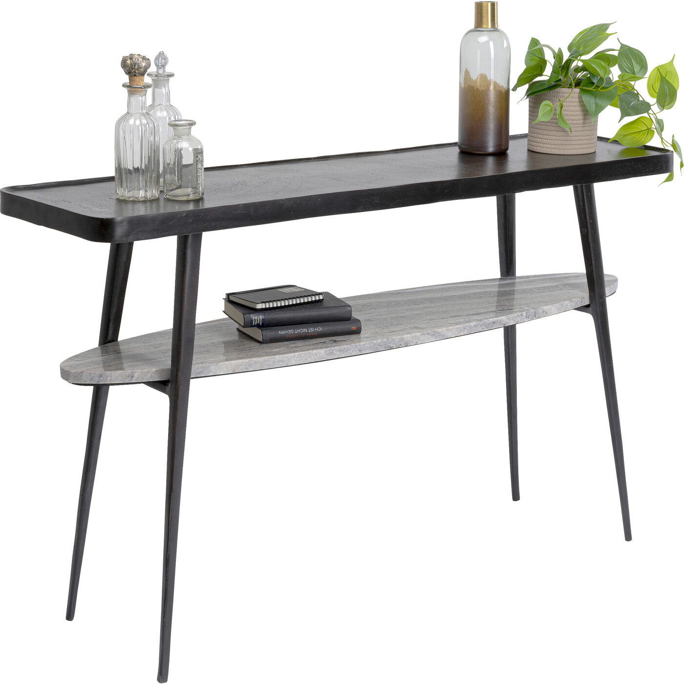 - Console noire en métal et marbre avec deux étagères, 81 x 135 x 35 centimètres (h/l/p)