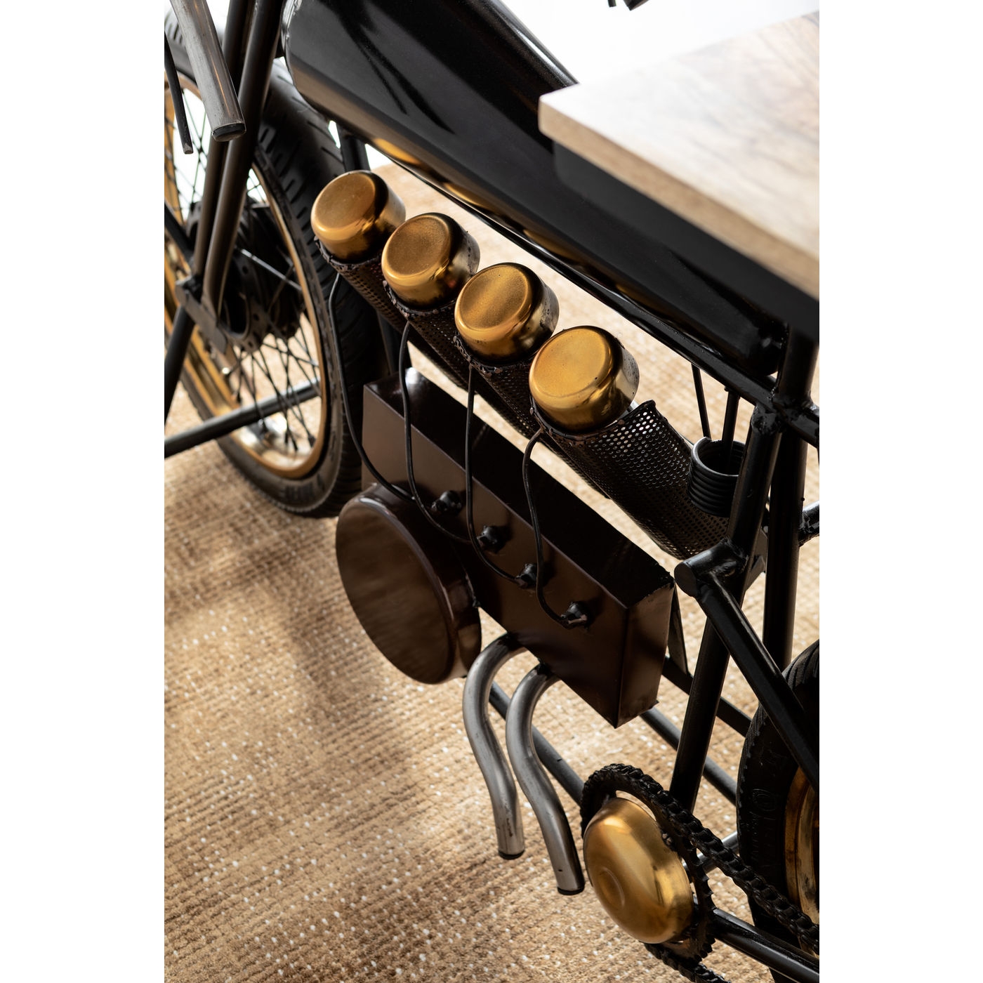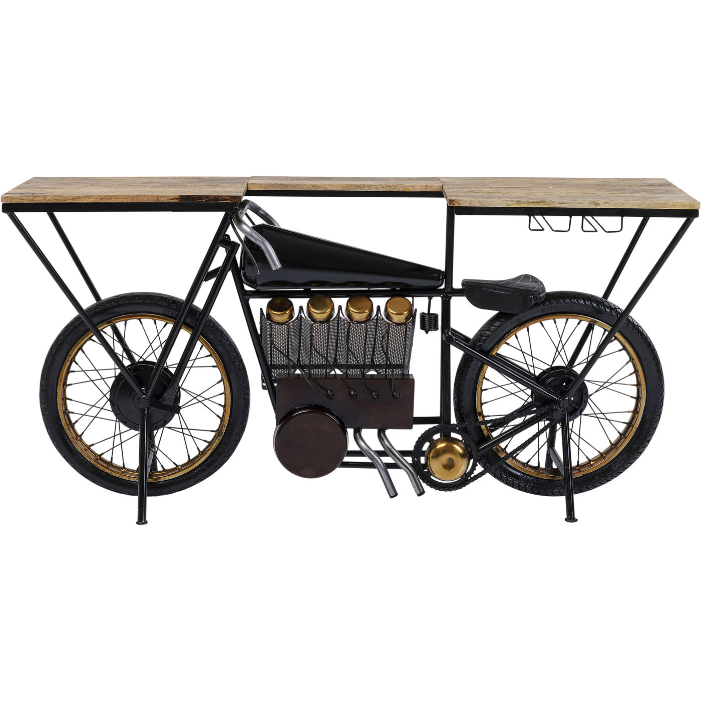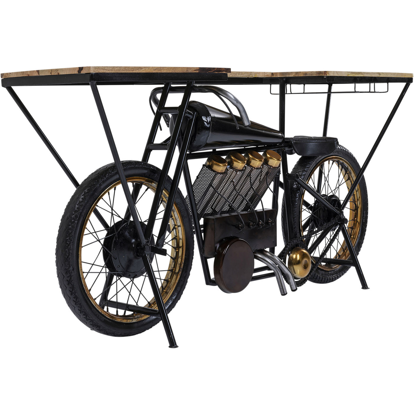 Cette console, qui peut être parfaitement équipée comme un bar, est probablement le rêve de nombreuses dames motards et de nombreux grands garçons: design décontracté dans un style industriel, panneau de bois de manguier rustique et de nombreux détails de design rétro.